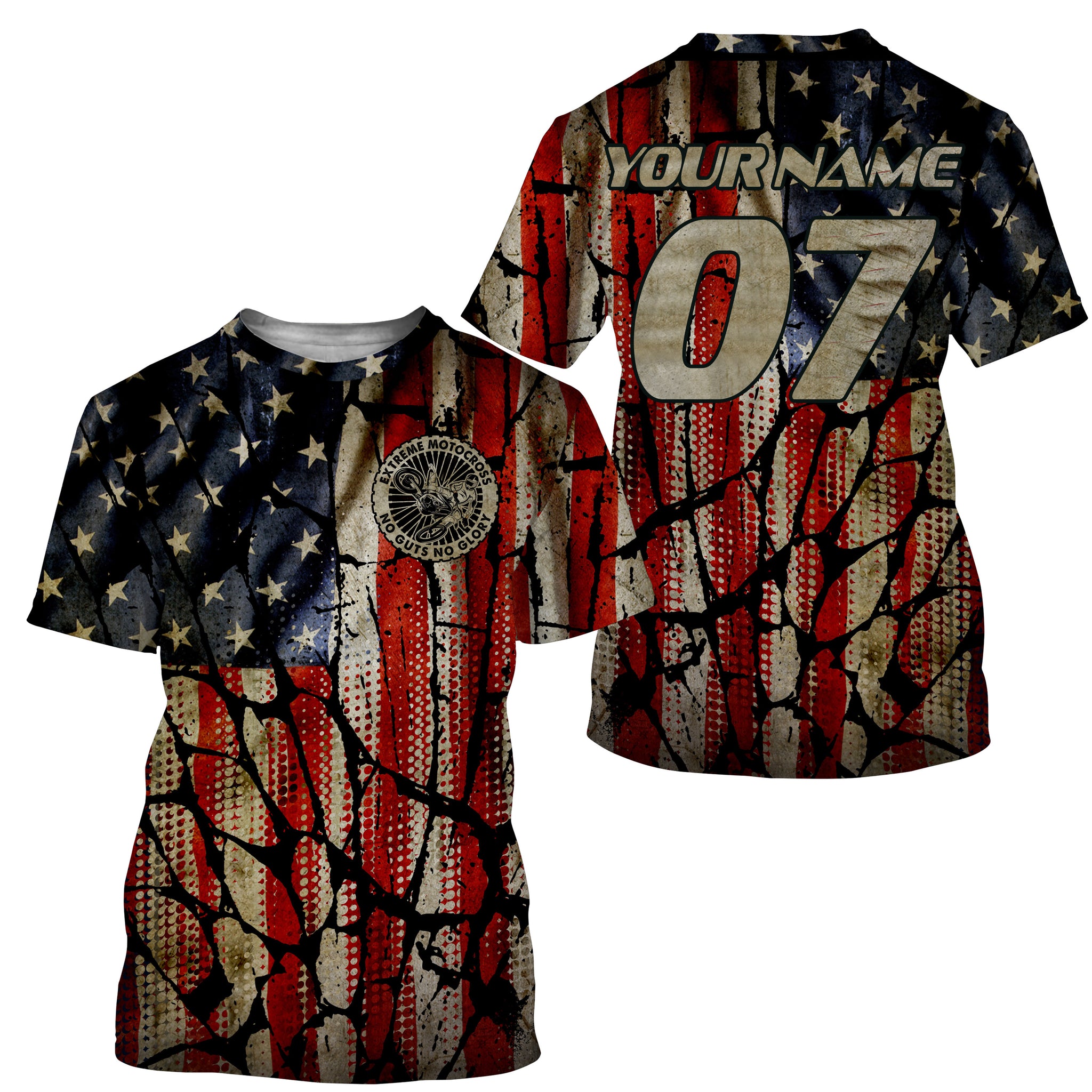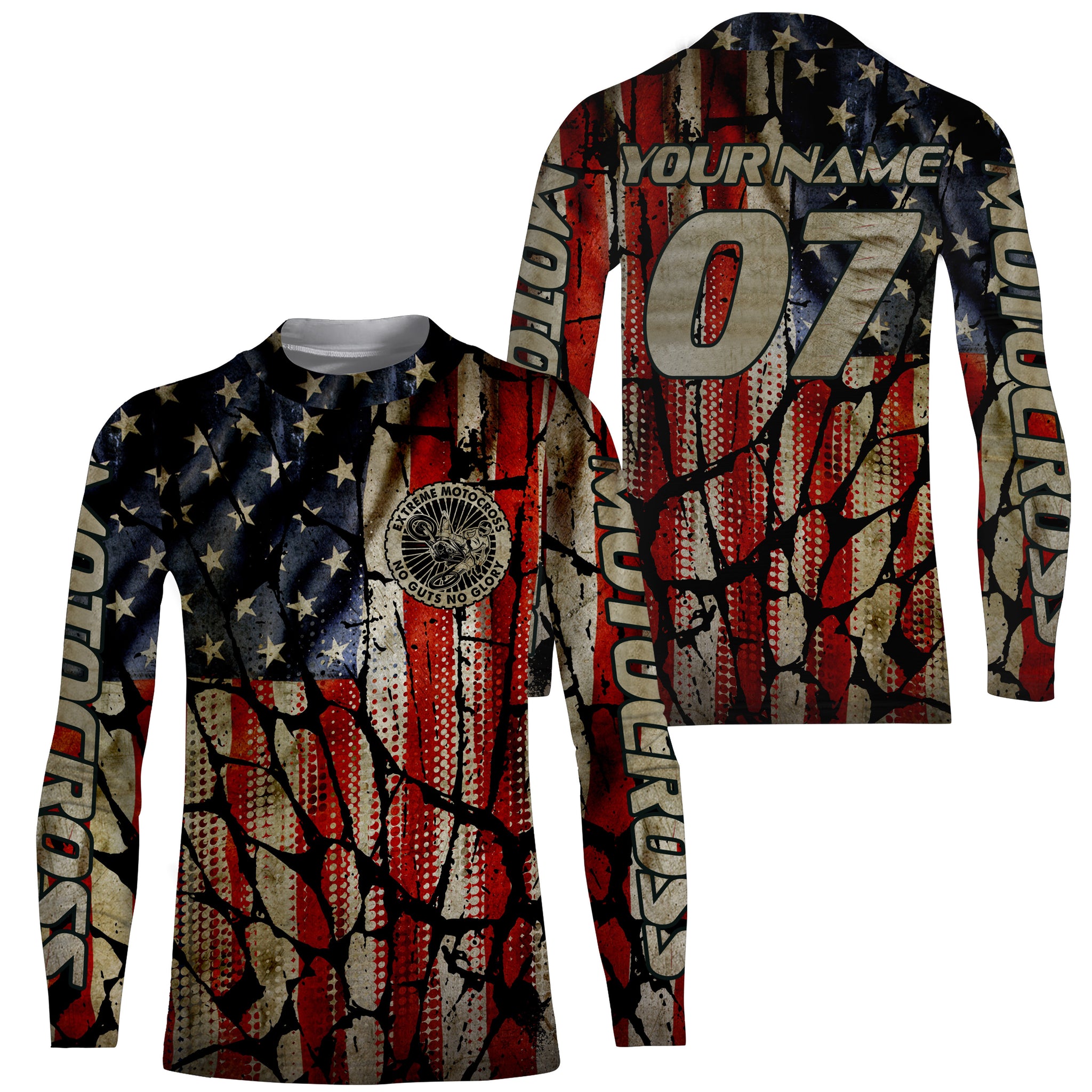 Adult&Kid custom Motocross jersey UPF30+ No Guts No Glory American flag MX dirt bike racewear| NMS926