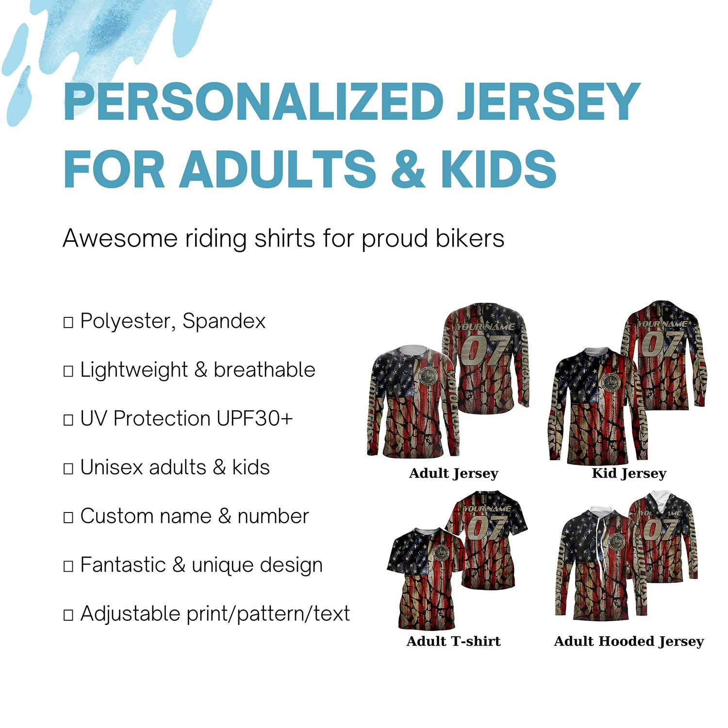 - PERSONALIZED MOTOCROSS JERSEY: This super cool long-sleeved shirt is exactly what all bikers are looking for. Add your name/number to make it a unique one that bears your own imprints.
