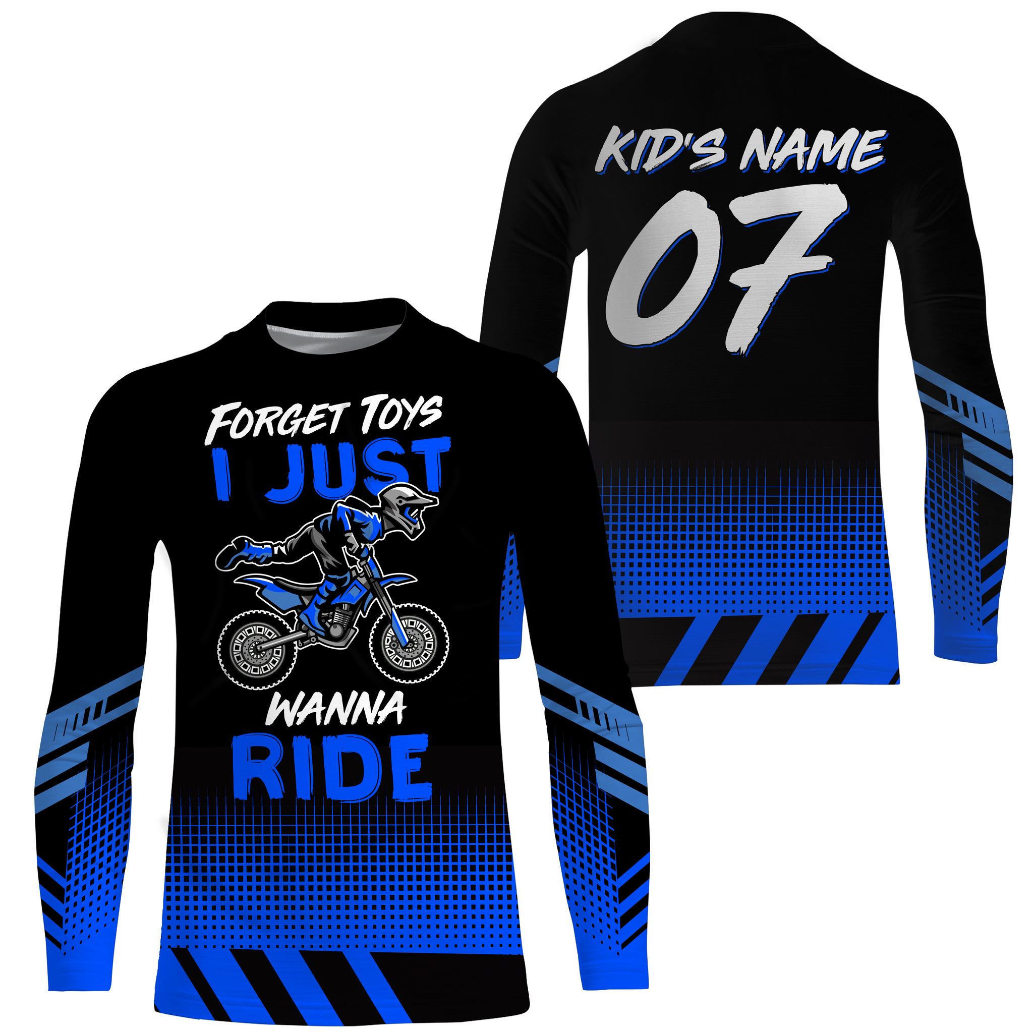 Kid Custom Motocross Jersey Forget Toys I Just Wanna Ride Dirt Bike UPF30+ Youth Racing Motorcycle NMS955