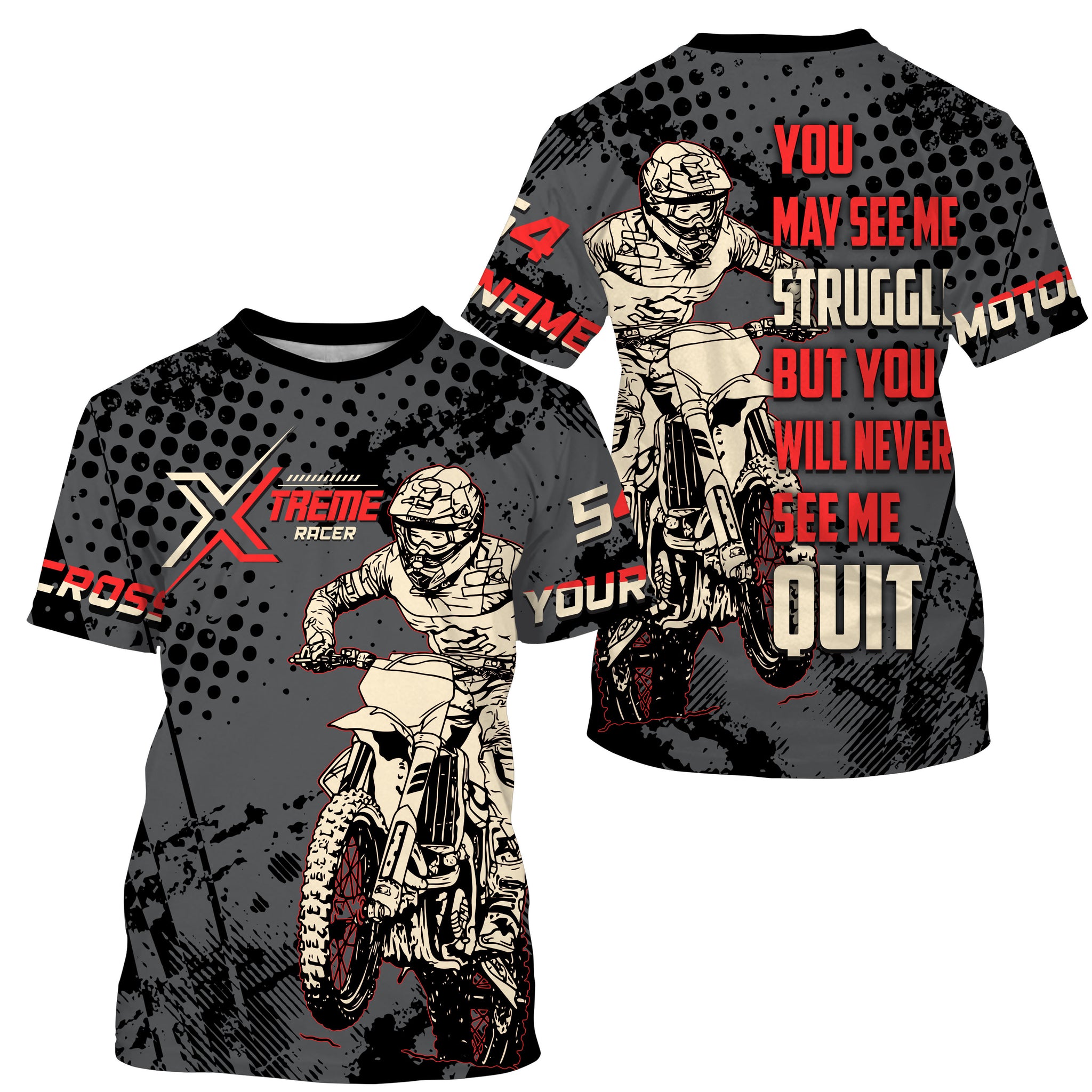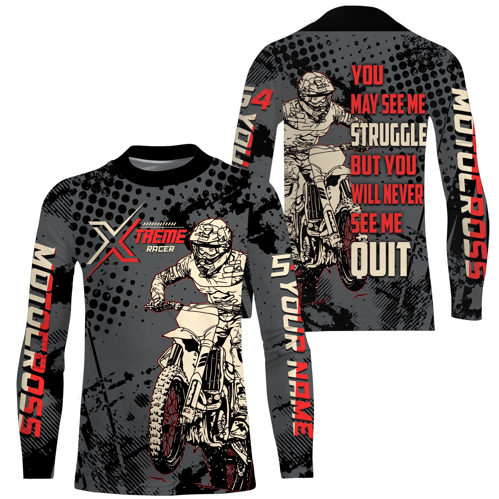 Personalized Motocross Jersey UPF30+ UV Protect, Never Quit Dirt Bike Off-Road Riders Racewear| NMS443