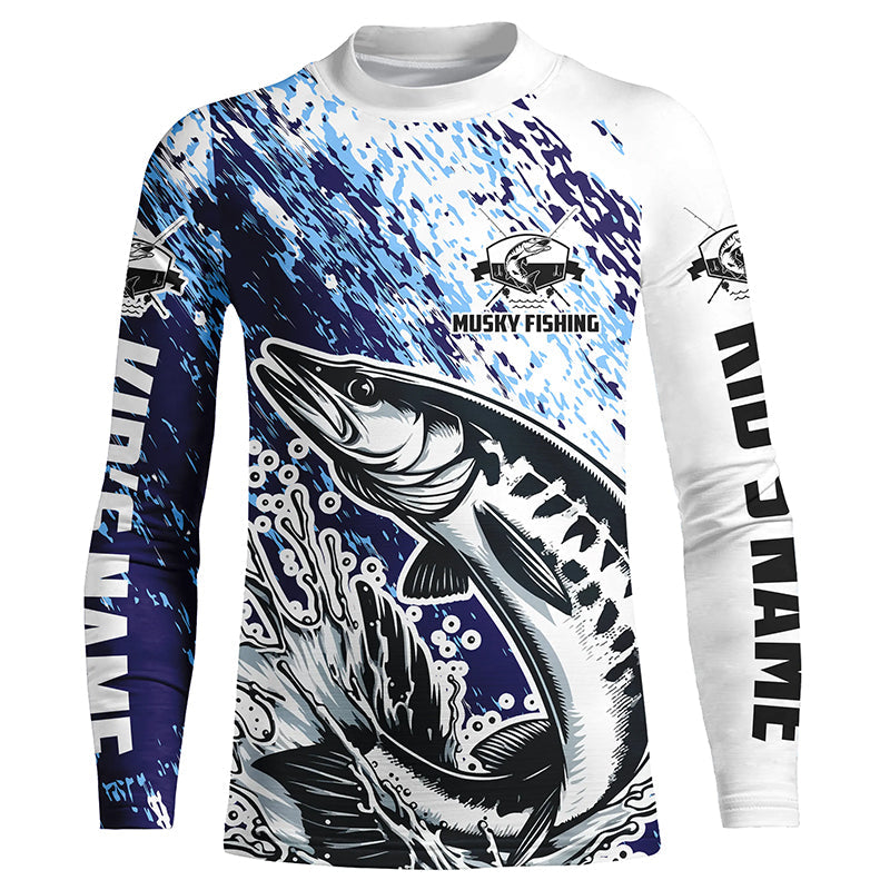 Custom Musky Fishing Jerseys, Muskie Long Sleeve Performamce Fishing Shirts For Adult And Kid | Blue IPHW5594