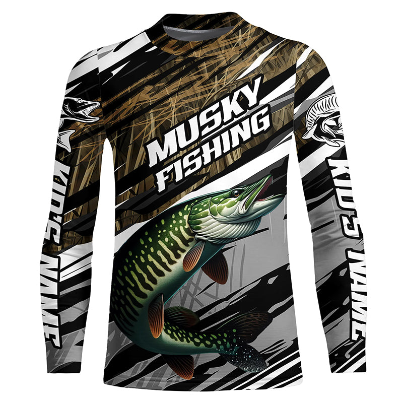 Musky Fishing Grass Camo Custom Long Sleeve Shirts, Muskie Uv Protection Tournament Fishing Jerseys IPHW6080
