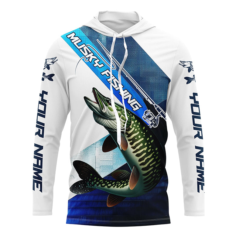 Musky Fishing Custom Long Sleeve Performance Shirts, Muskie Tournament Fishing Jerseys | Blue IPHW6286