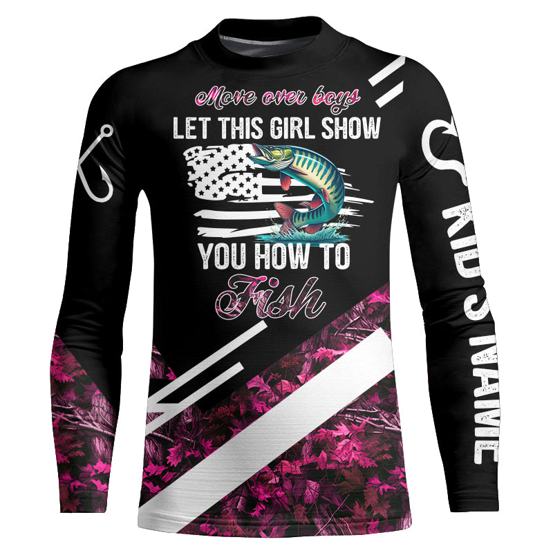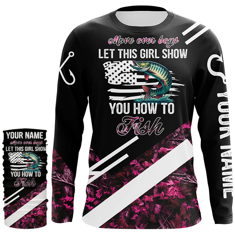 Move over boys let this girl show you how to fish Musky fishing pink camo custom name 3D fishing shirt NQS5162