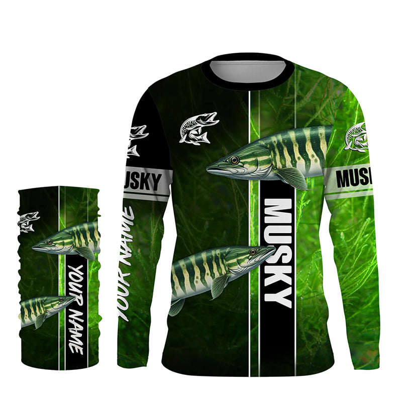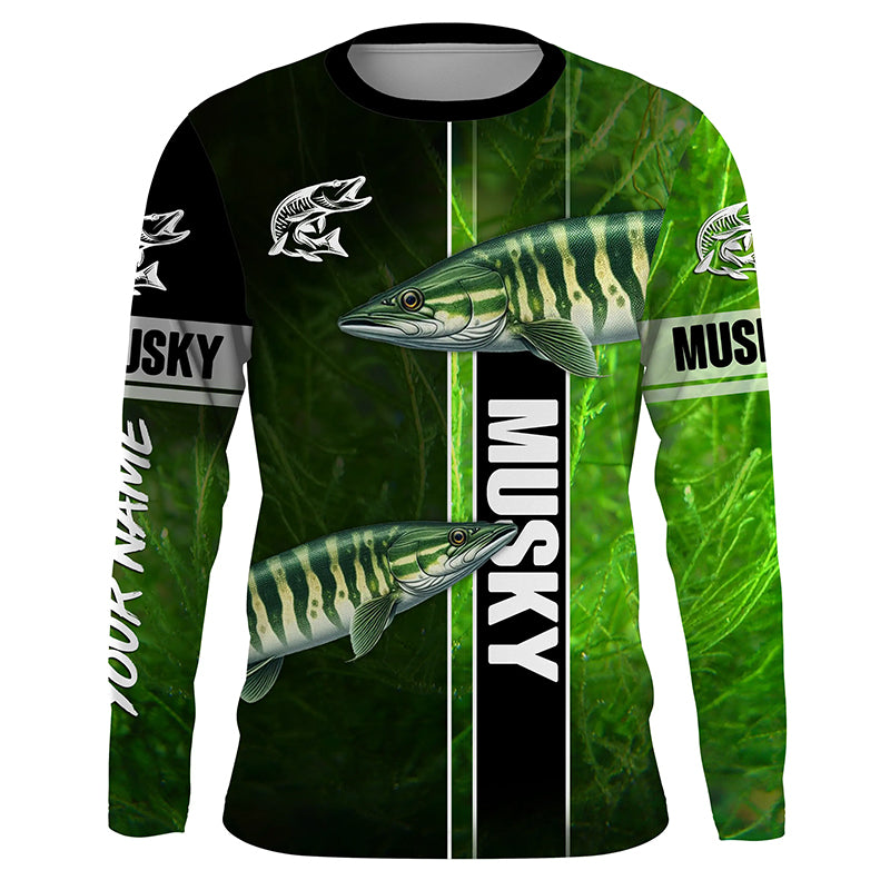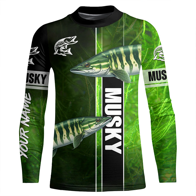 Musky Fishing Muskellunge green Customize Name Long Sleeve Fishing Shirts, fishing gifts NQS1992