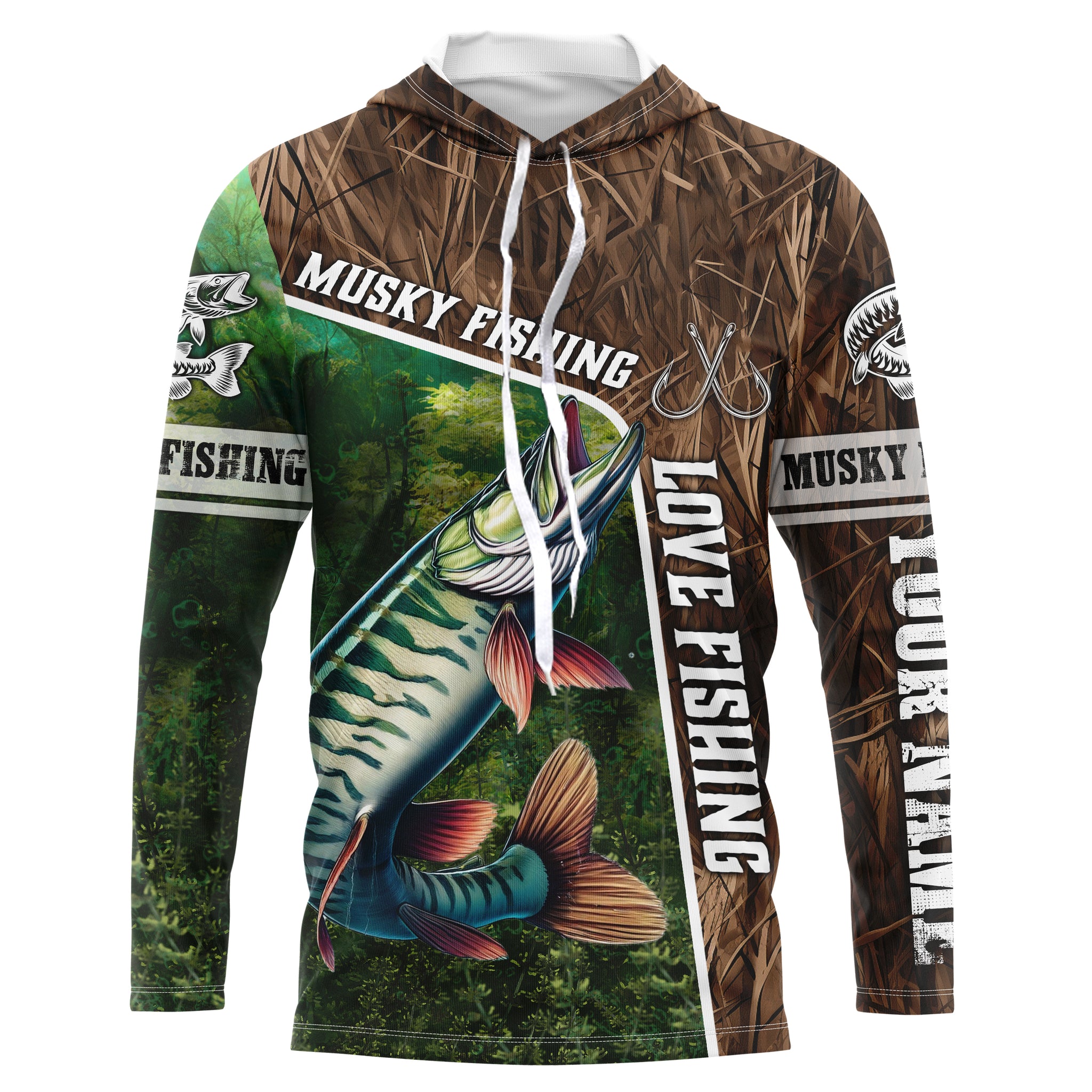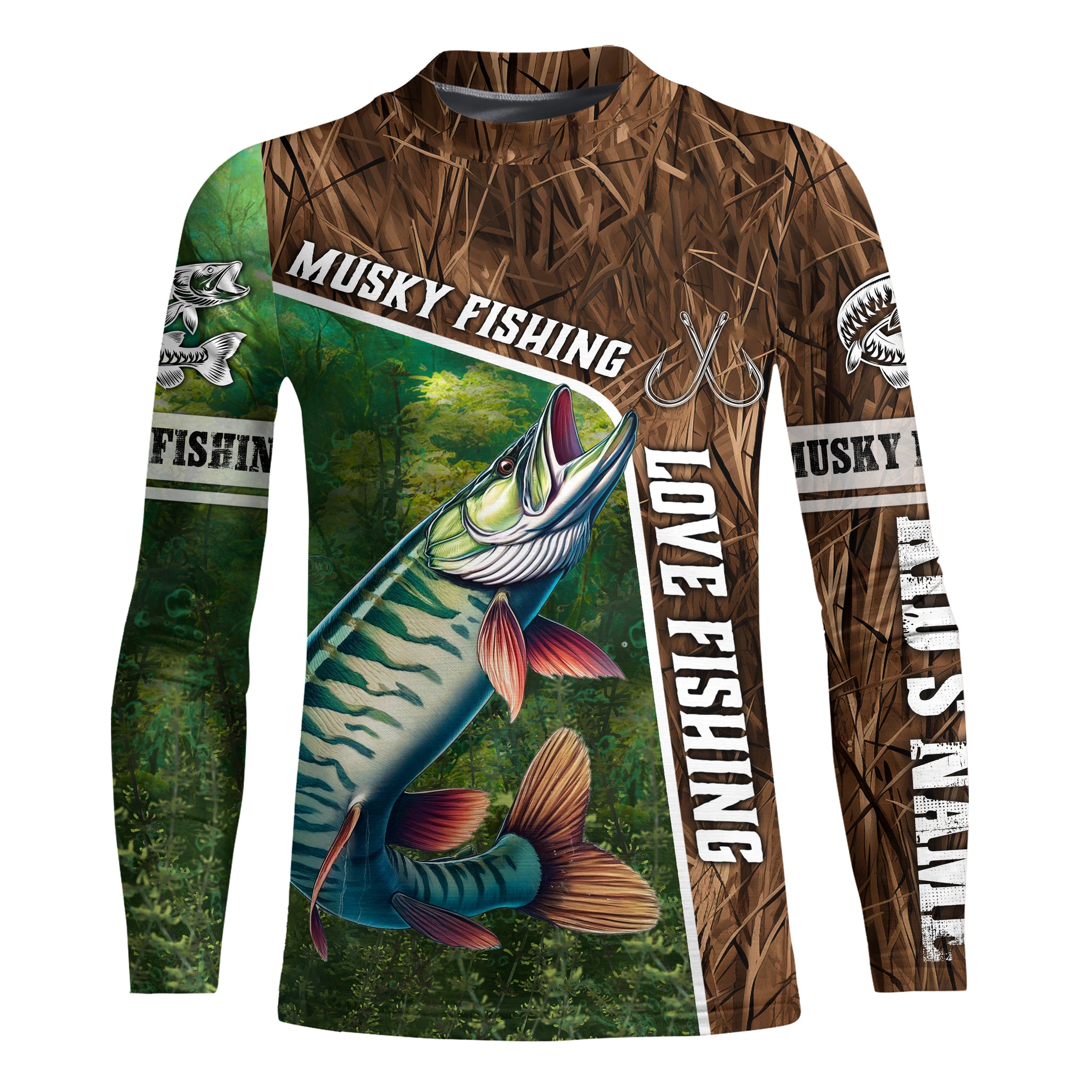 Personalized Musky Fishing Shirts, Love Fishing Camo fish on 3D All Over Printed Muskie Shirts NQS5900