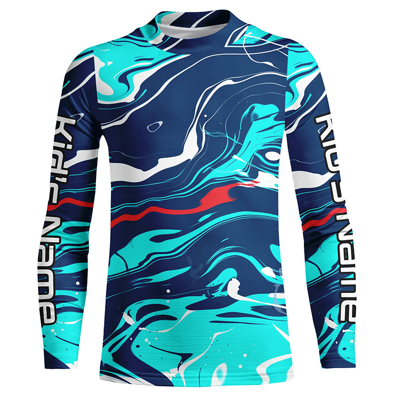 Red, White And Blue Camo Custom Long Sleeve Performance Fishing Shirts, Personalized Fishing Jerseys IPHW5871