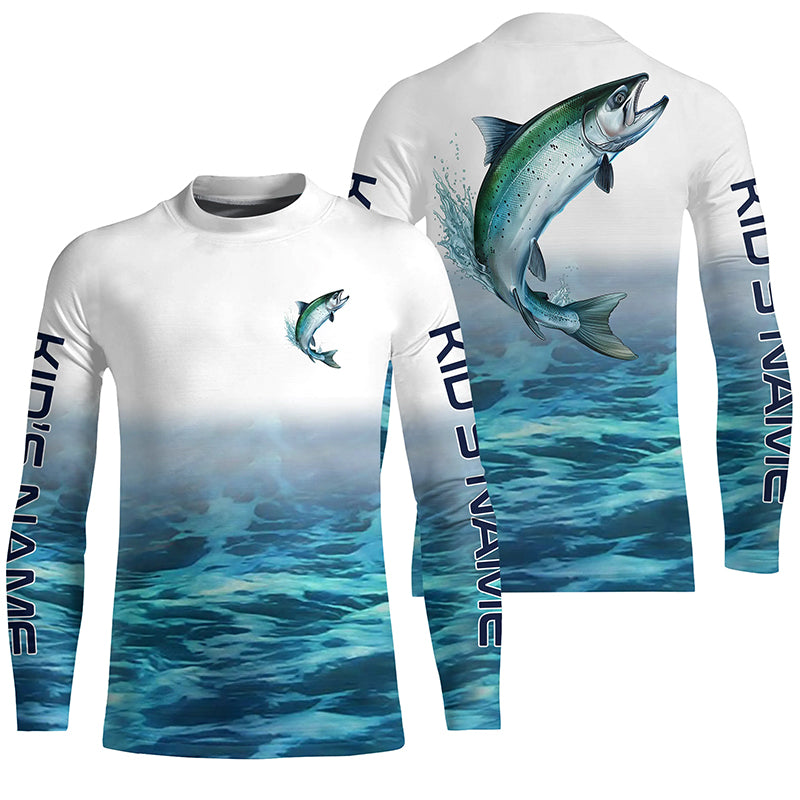Personalized Chinook King Salmon Saltwater Long Sleeve Fishing Shirts, Salmon Fishing Jerseys IPHW6067