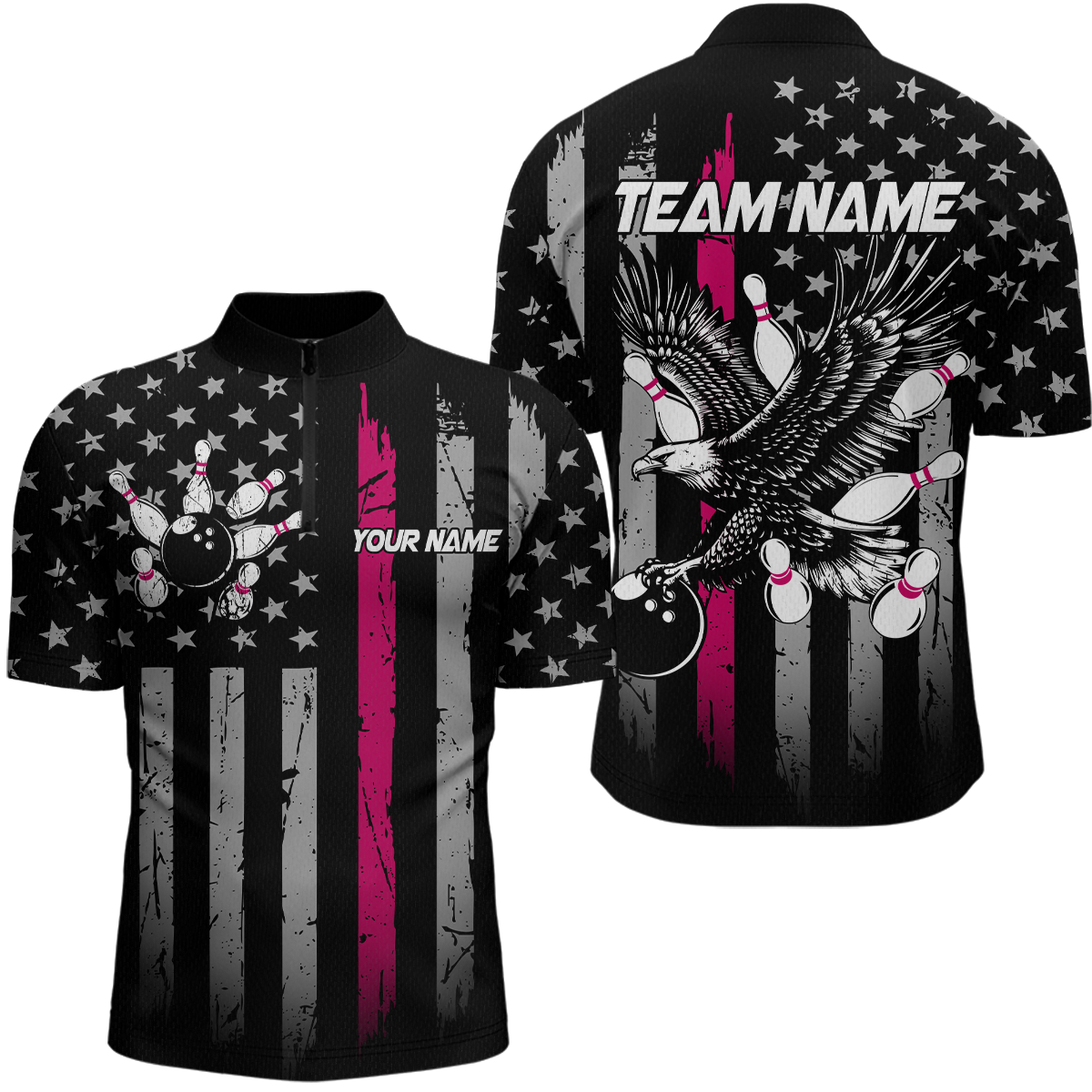 Custom Pink US Flag Eagle Bowling Jersey for Men Bowling Team Shirts Polo & 1/4 Zip HNT119