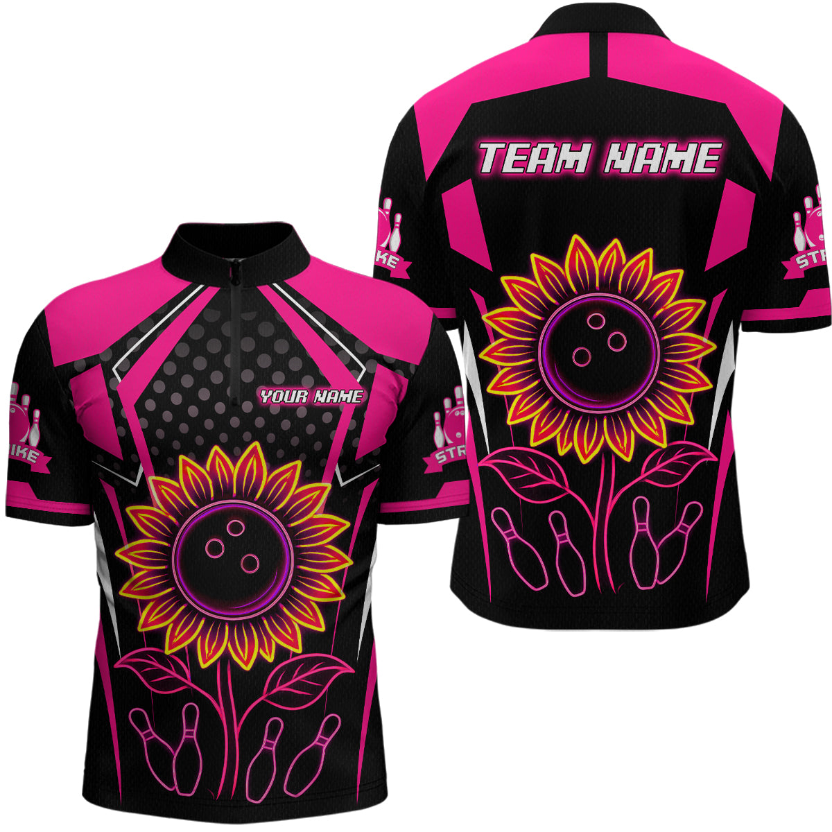 Pink Neon Lightning Sunflower Bowling Shirt for Men Custom Team Bowling Polo Bowling Jersey QZT771