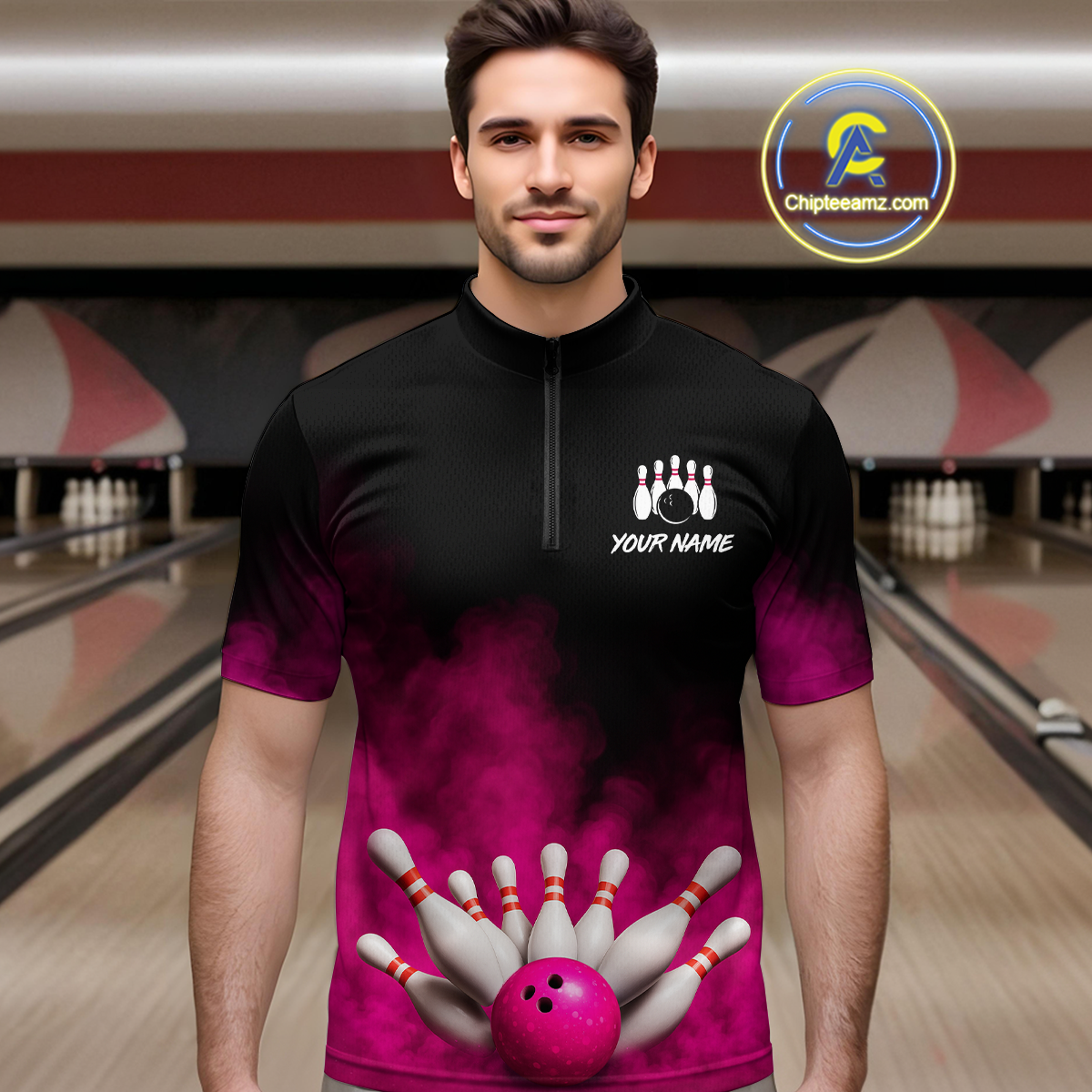 Pink Smoke Bowling Shirts for Men Women Team Personalized Bowling Polo and Quarter Zip MBL130
