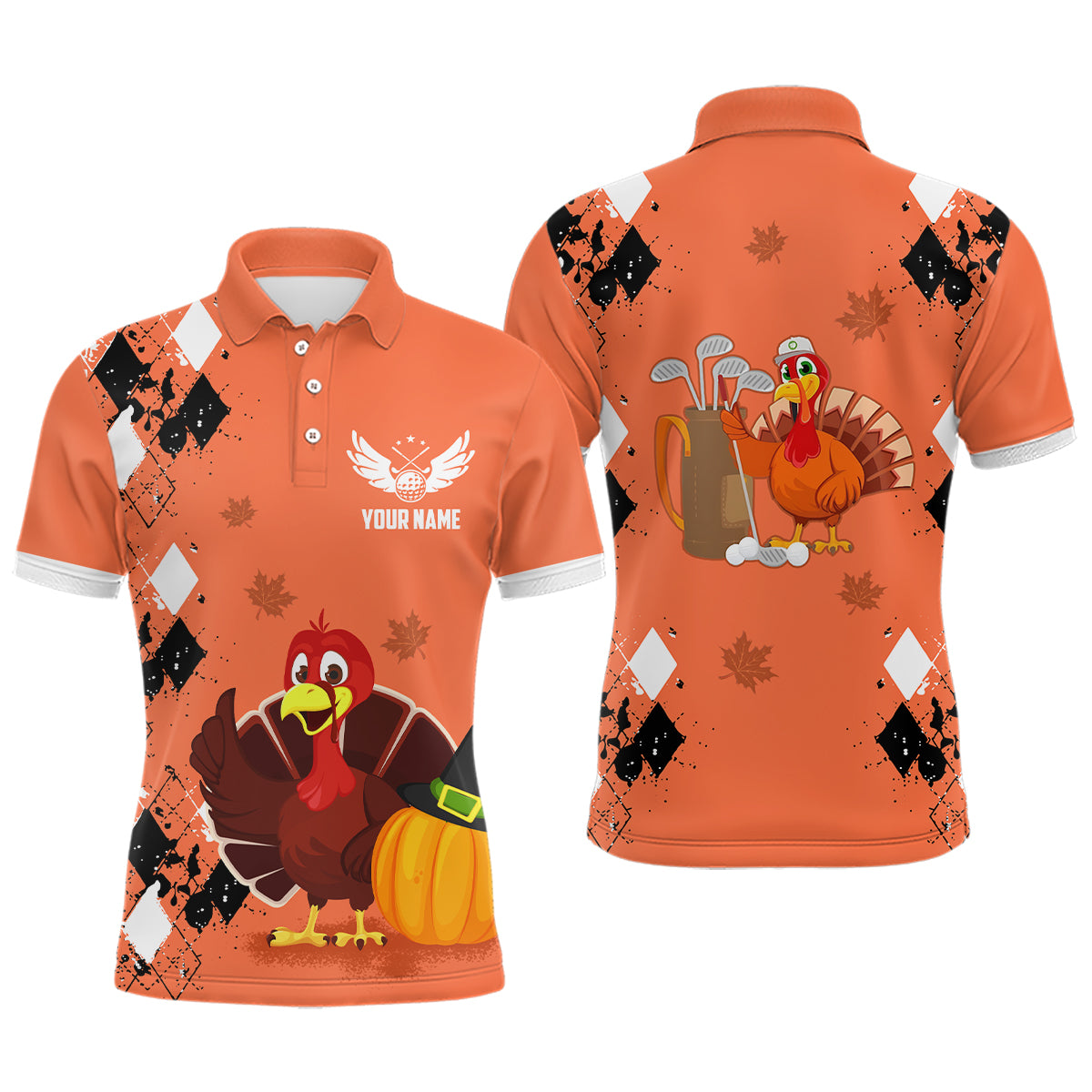 Turkey Bird Thanksgiving Golf Mens Polo Shirt Argyle Orange Custom Men Golf Outfits Cool Golf Gifts LDT0871