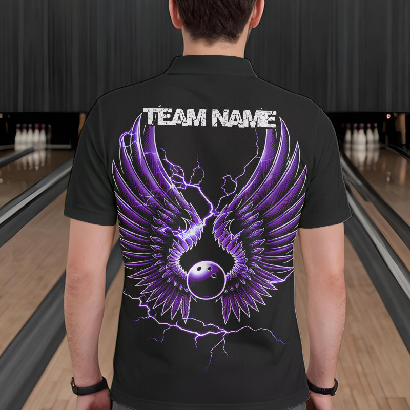 Purple Thunder Lightning Bowling Wings Custom Bowling Team Polo Shirts For Men IPHW8395