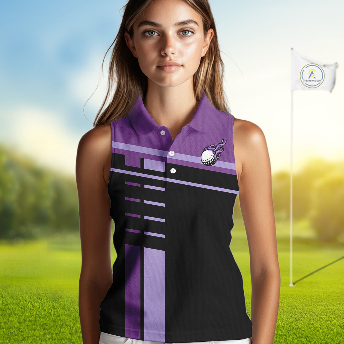 Personalized Black and Purple Women sleeveless polo shirt, Golf Shirts For Team ladies golfers NQS10160