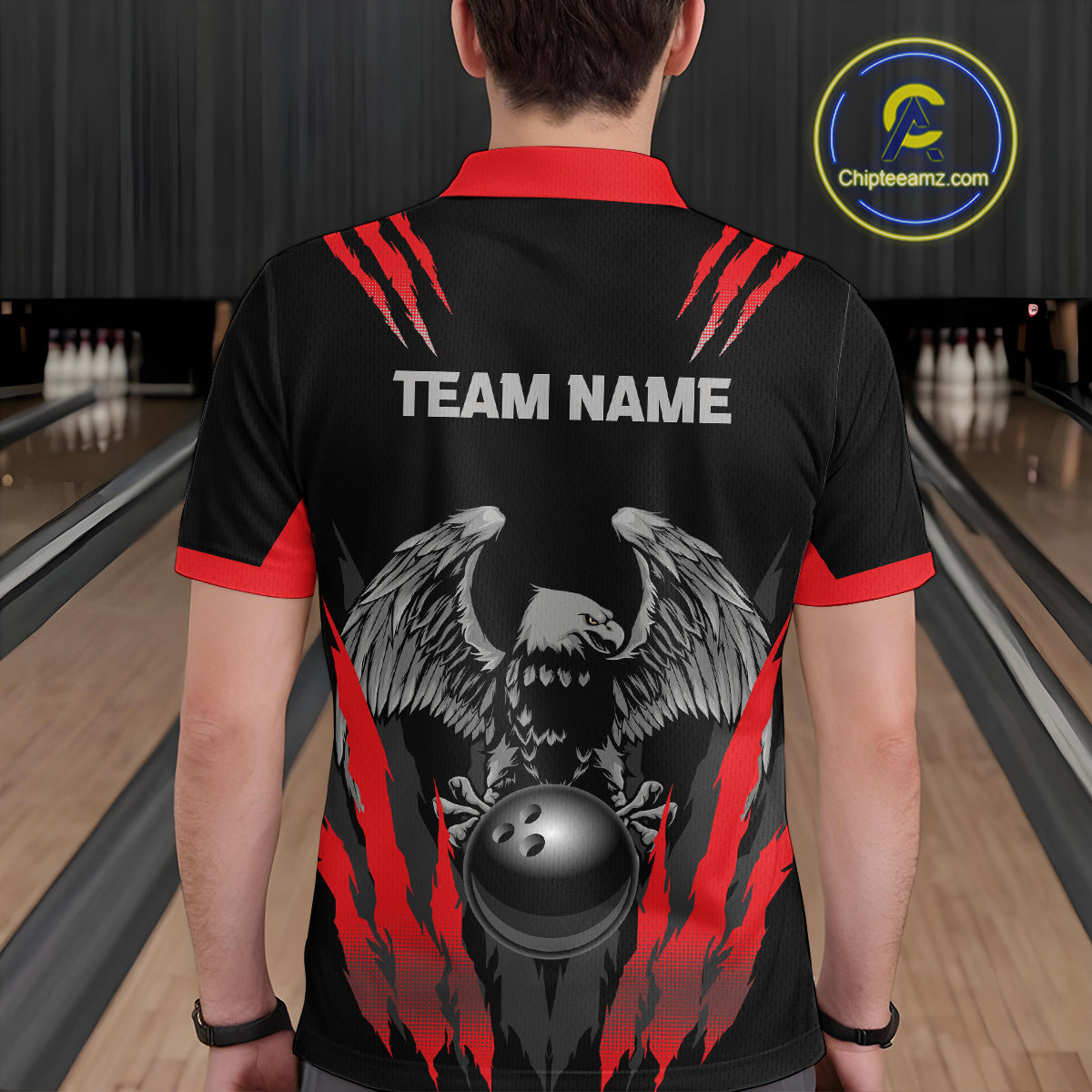 Black and Red Eagle Bowling Shirts For Men Custom Eagle Bowling Team Jerseys Bowling Uniform NQS11151
