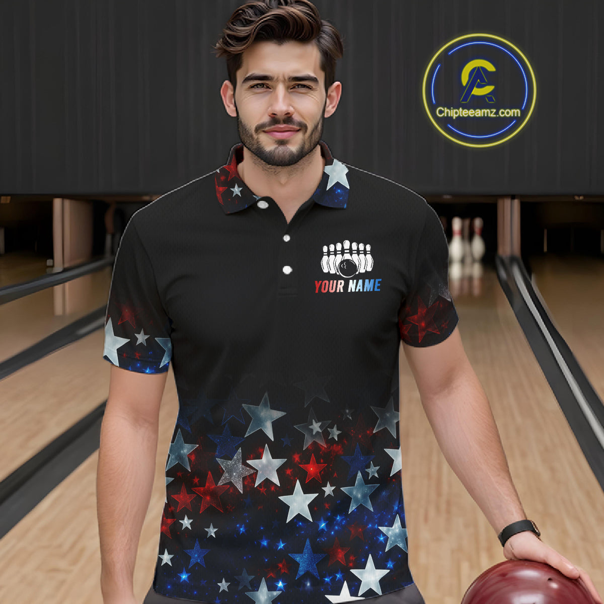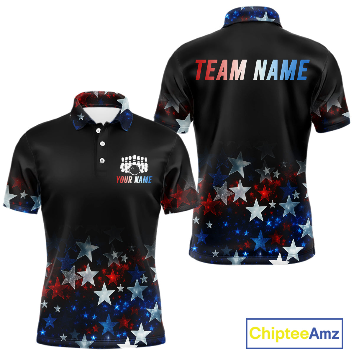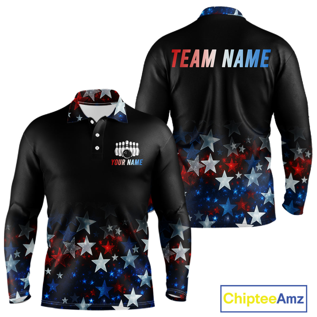 Personalized Red, White and Blue Stars Pattern Bowling Team Shirts For Men Patriotic Bowling Gifts NQS11169