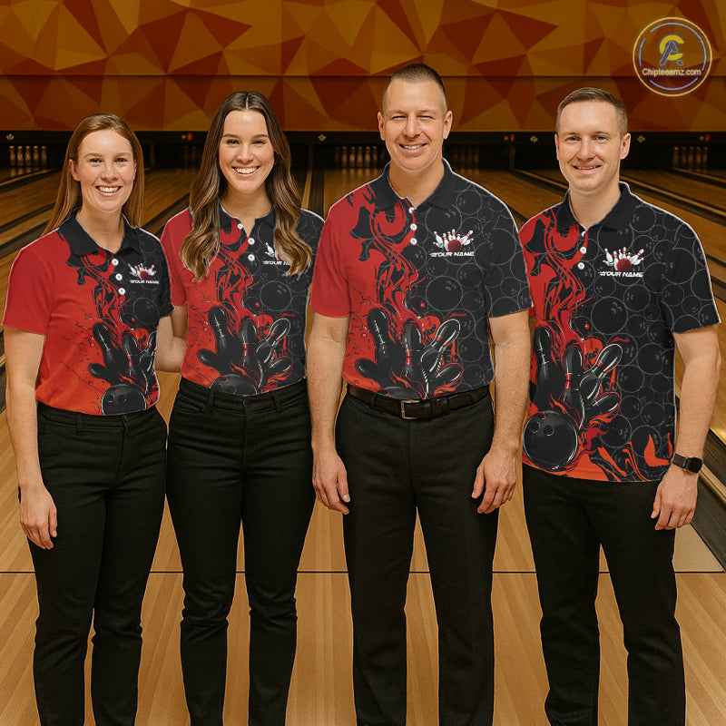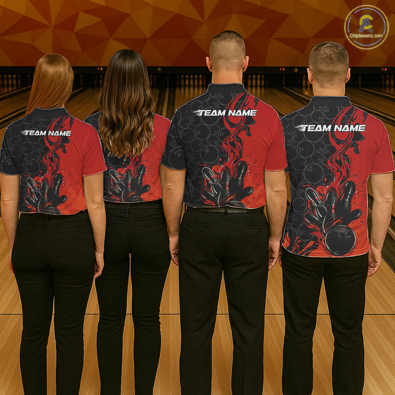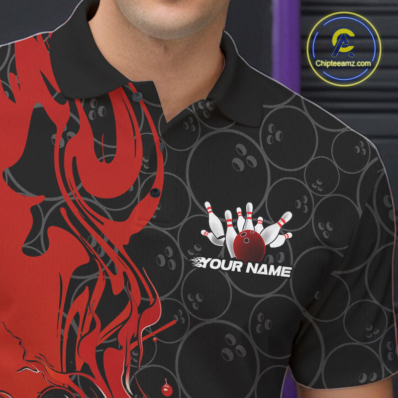 Custom Red Orange Fire Flame Bowling Team Men Polo Shirts, Bowling League Shirt IPHW10184