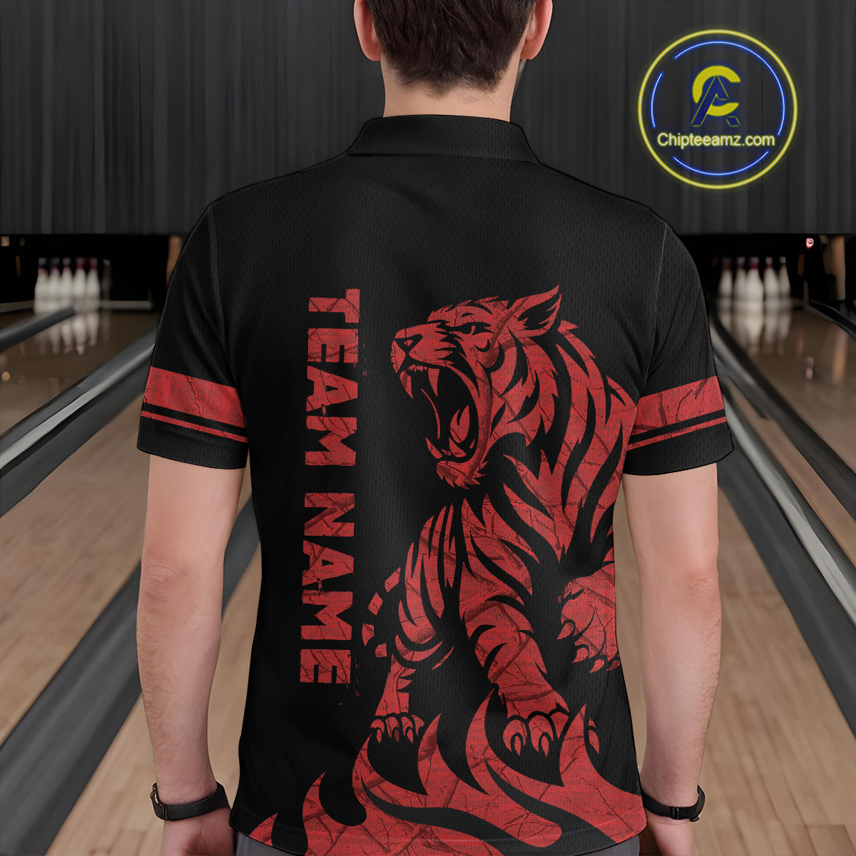 Red Tiger Bowling Shirts for Team Men Women Custom Bowling Jersey Polo & Quarter Zip Shirt MBL188