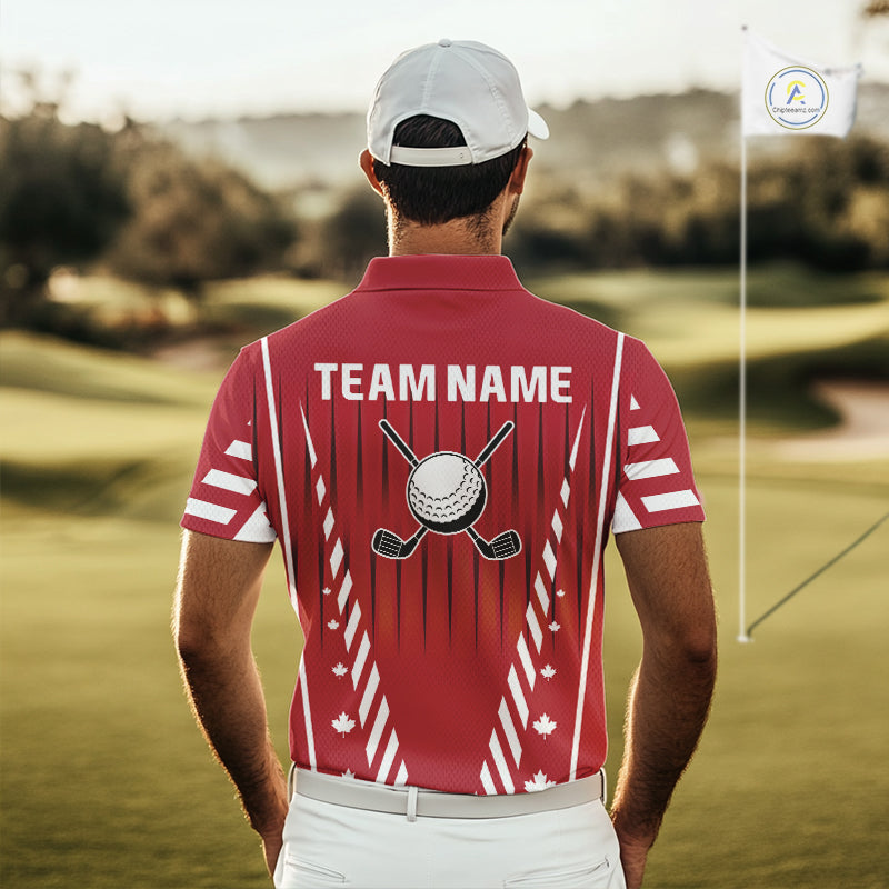 Red and White maple leaf Canadian Men golf polo shirt Custom Patriotic Golf attire For men NQS10185