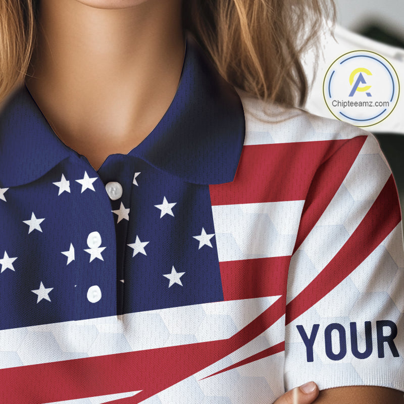 Red, White and Blue American Flag Golf polos shirts for Women custom patriotic ladies golf attire NQS10304