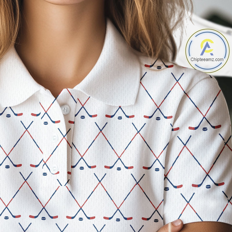 Red, White and Blue golf clubs pattern Women golf polo shirt Custom Patriotic golf outfits for ladies NQS10198