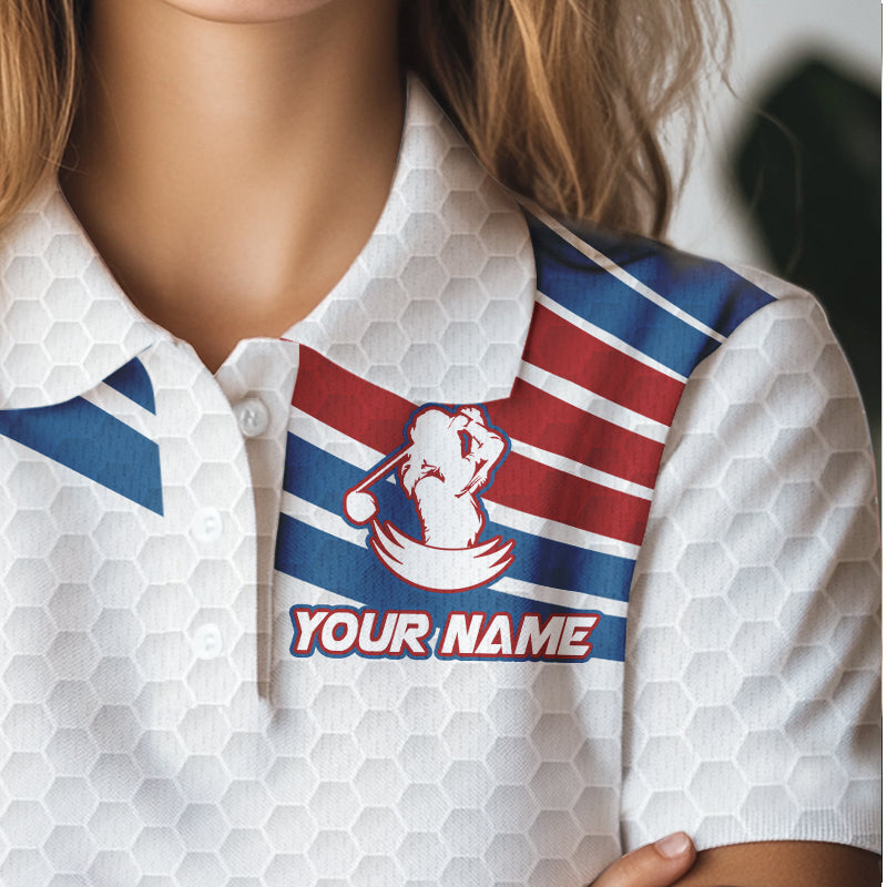 Red, White and Blue Pattern Women golf polo shirts custom Patriotic golf wear for ladies NQS9381