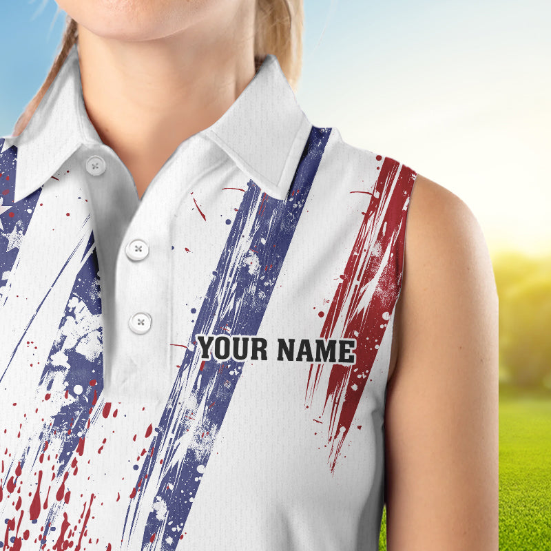 American flag patriotic Women sleeveless polos custom swing swear look for ball repeat ladies golf top NQS9359