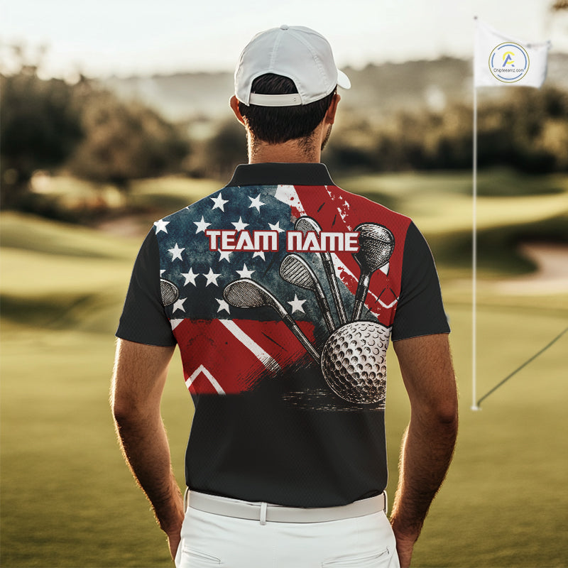 Personalized American Flag Golf Polo Shirts For Men, Patriotic Golf Gifts NQS10830