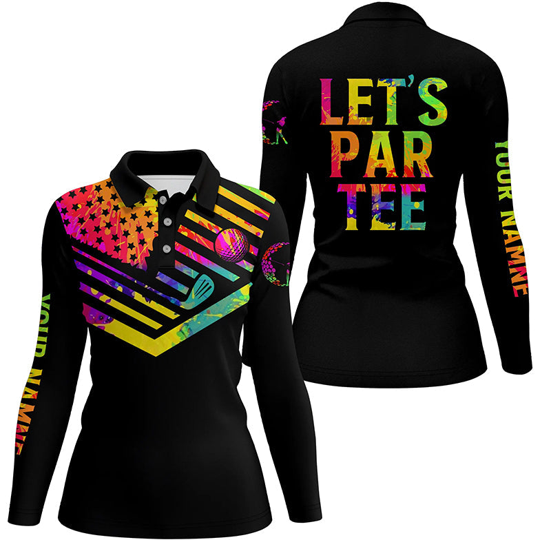 Womens golf polo shirts watercolor American flag patriot golf custom Let’s Par Tee black golf shirt NQS7433