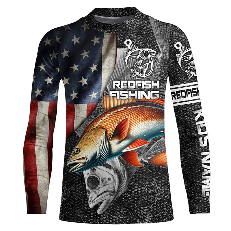 Redfish fishing American flag patriotic Long Sleeve UV protection Custom fishing shirts NQS1086