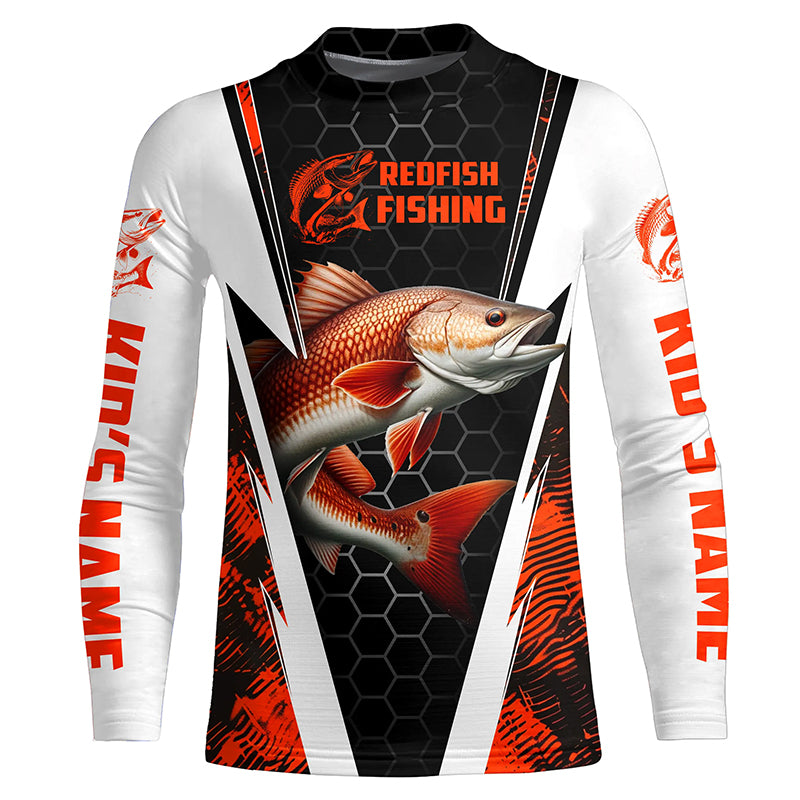 Custom Redfish Fishing Jerseys, Redfish Fishing Long Sleeve Fishing Tournament Shirts | Orange Camo IPHW6505