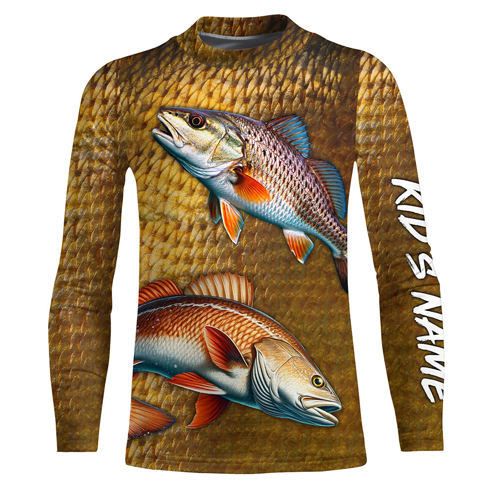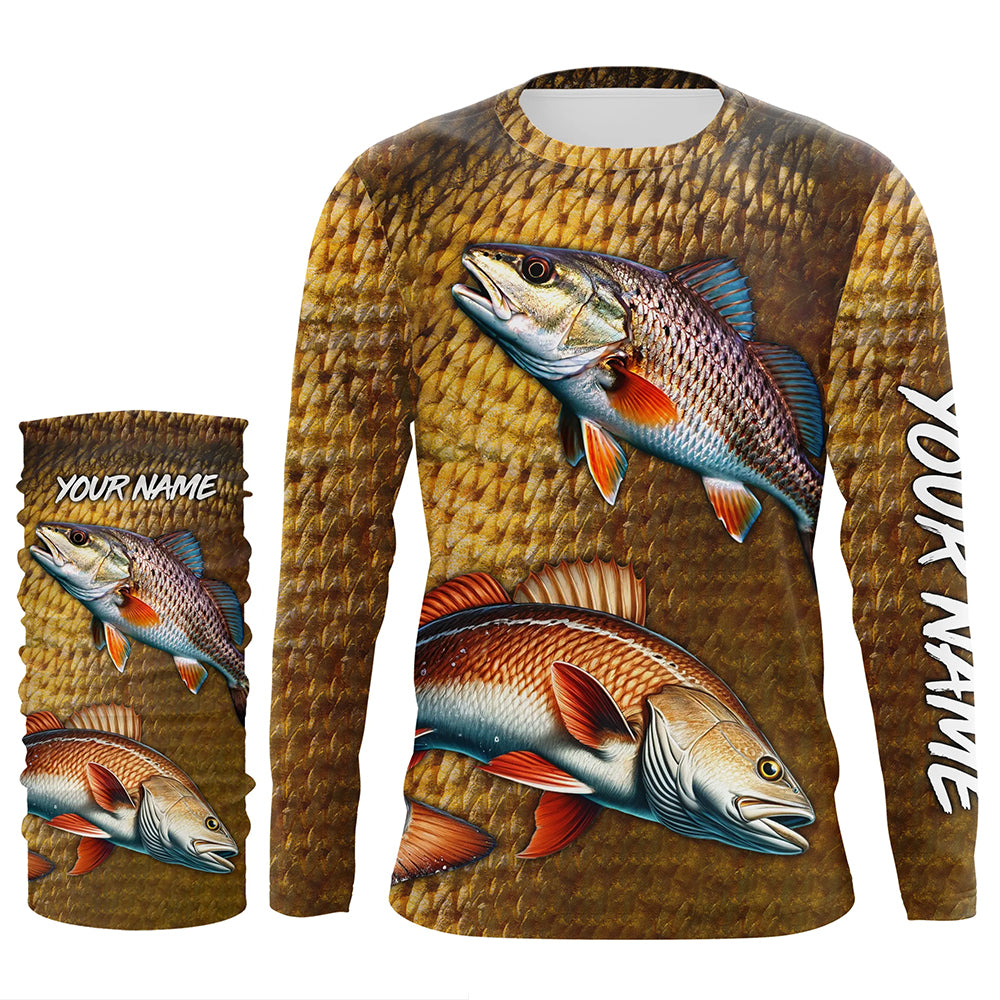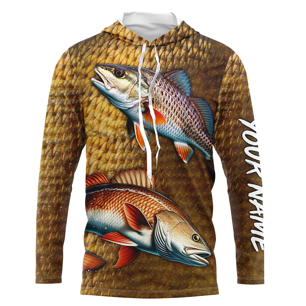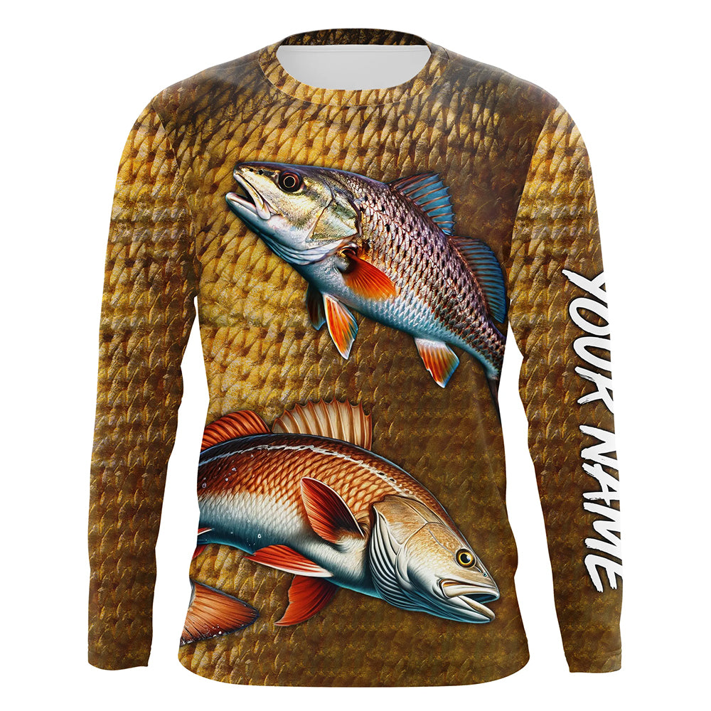 Redfish fishing scales Custom Name long sleeve Fishing Shirts, personalized red drum fishing jerseys NQS5266