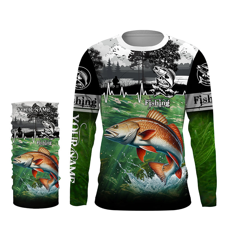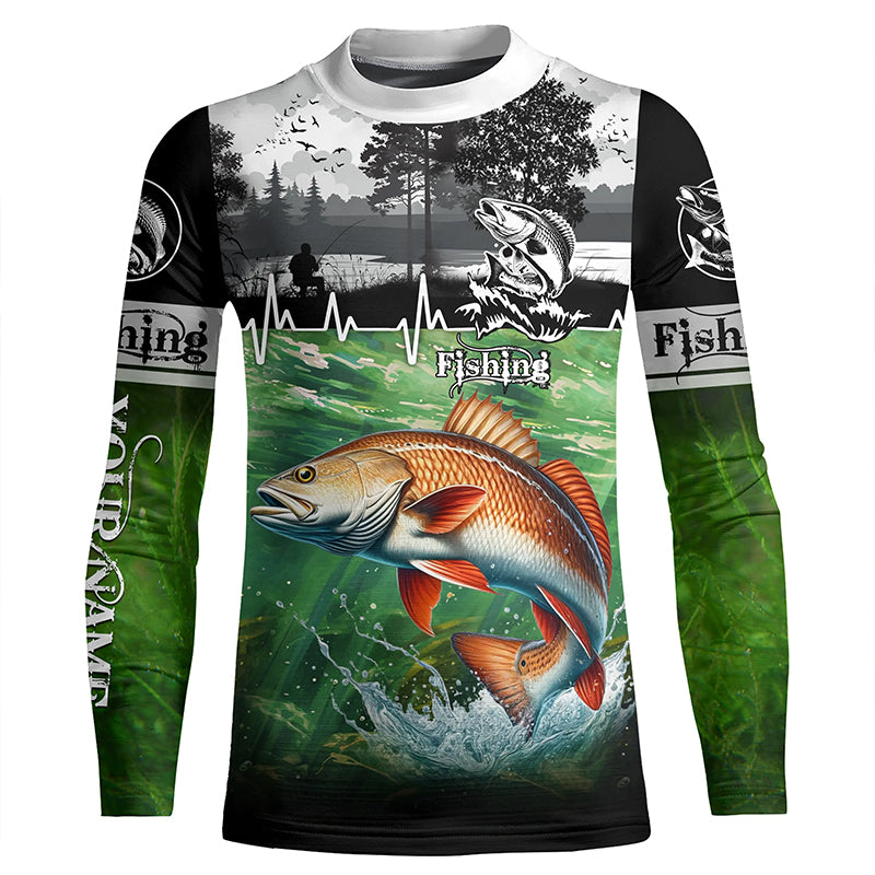 Redfish puppy drum Fishing UV protection Custom name long sleeves fishing shirt for men, women, Kid NQS2651