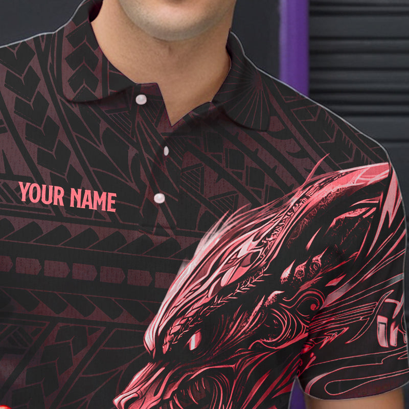 Black and Red Dragon Tribal Bowling Polo, 1/4 Zip Shirts For Men Custom Retro Bowling Team Jerseys NQS9629