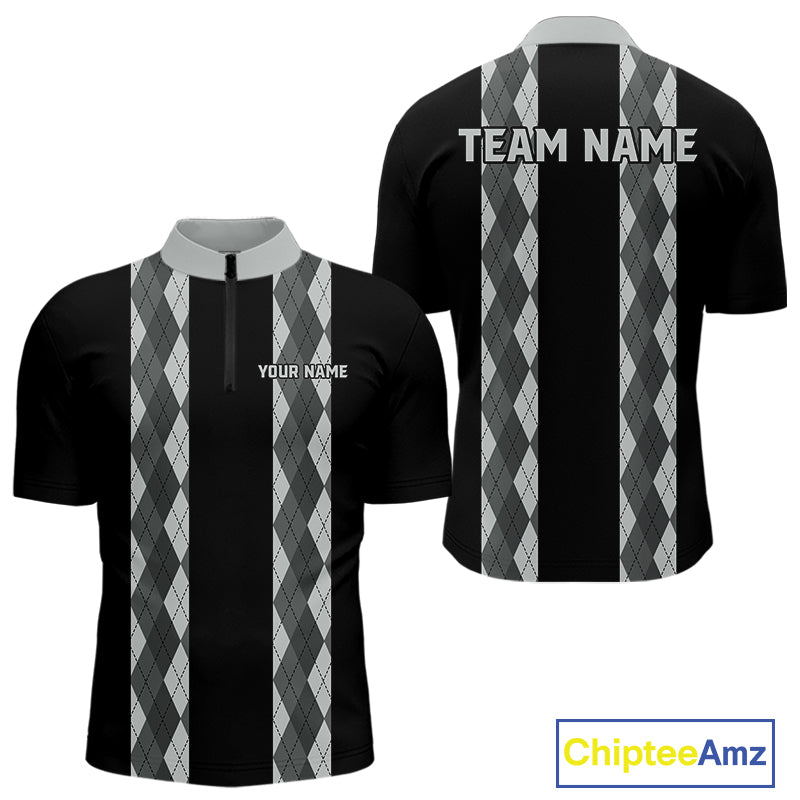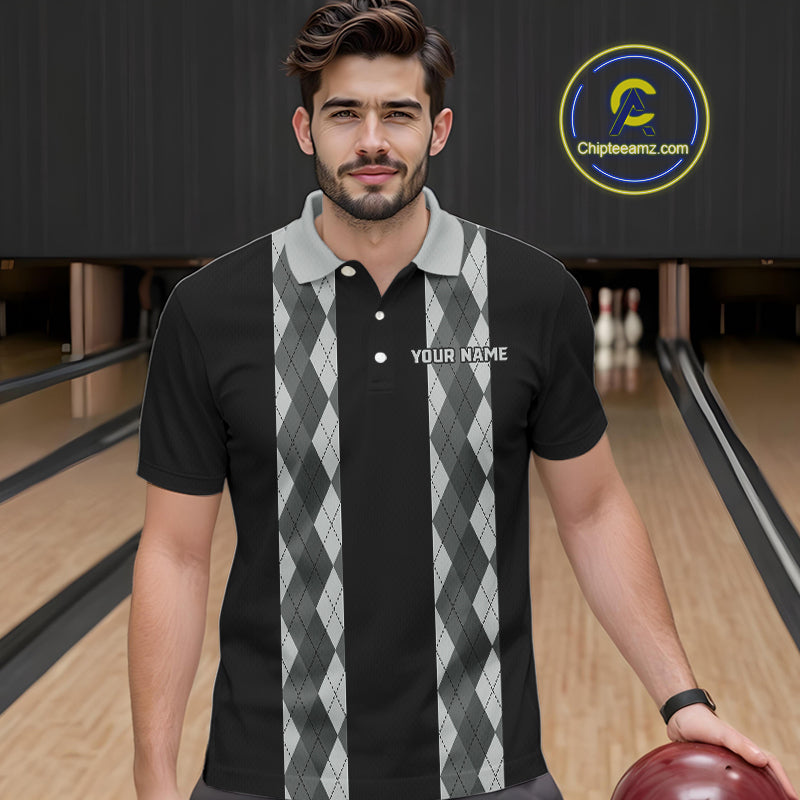 Retro Gray argyle pattern Black Bowling shirts For Men custom bowling team jerseys Bowler Outfits NQS10545