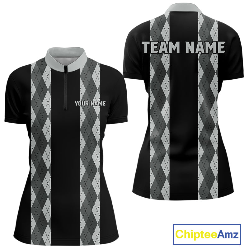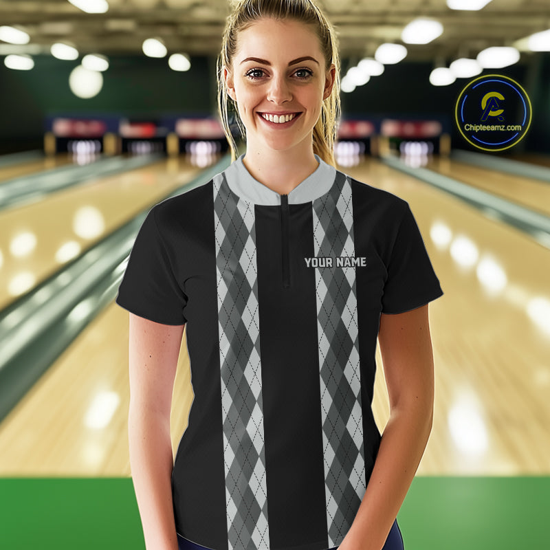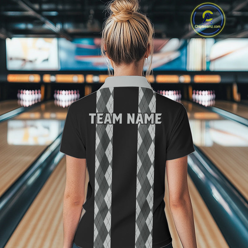 Retro Gray argyle pattern Black Bowling shirts For Women custom bowling team jerseys Bowler Outfits NQS10545