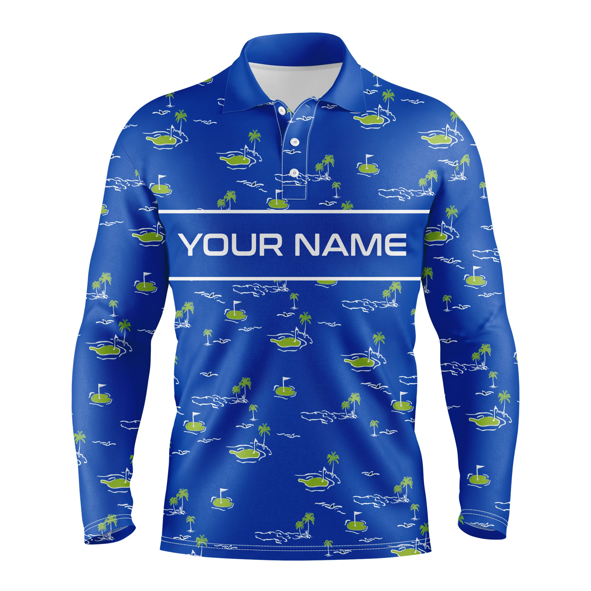 Mens golf polo shirts custom name Golf Course pattern tournament golf polo shirts for men | Blue NQS5082