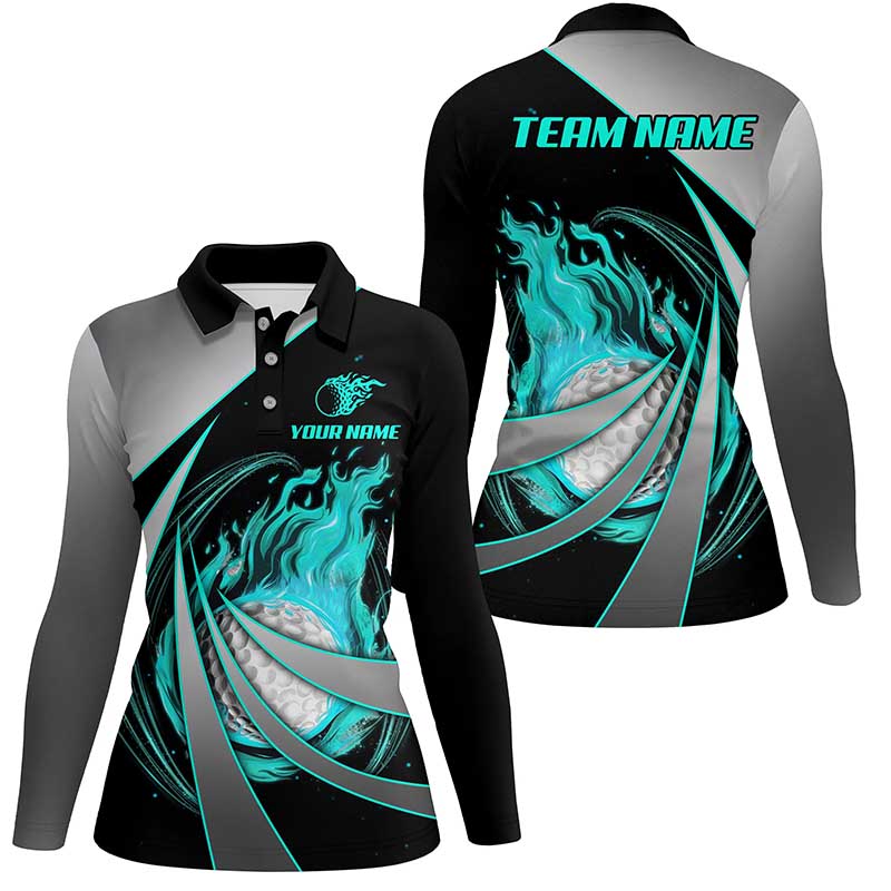Womens golf polos shirts custom flame golf ball shirts for women, personalized golf gifts | Cyan Blue NQS7957