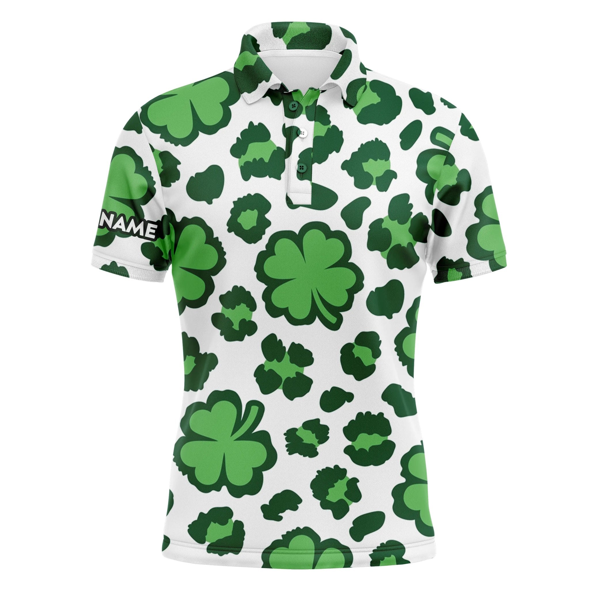 Funny Mens golf polo shirt clover and leopard pattern St. Patrick's Day custom name golfing gifts NQS4743