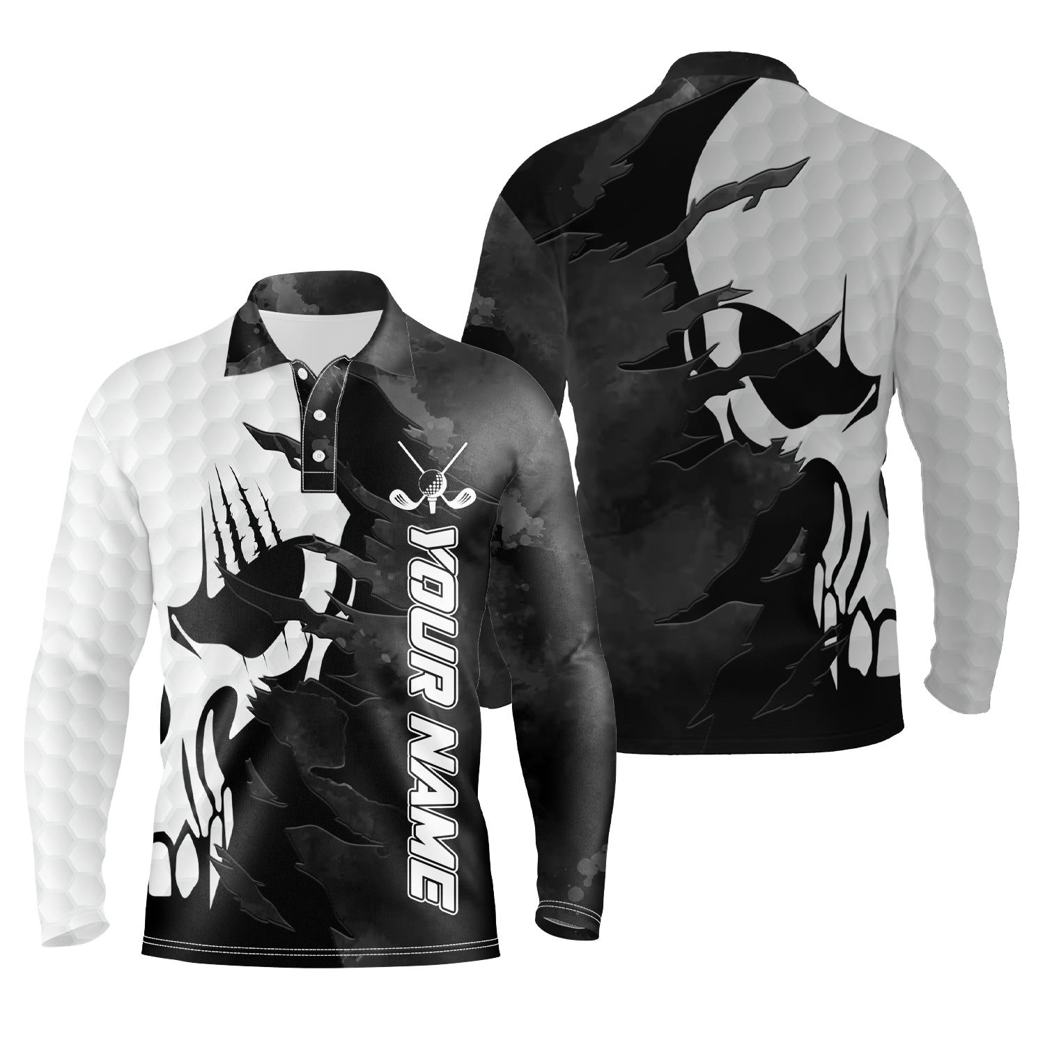 Black and white Mens golf polos shirts custom name golf skull shirts for men, personalized golf gifts NQS5264