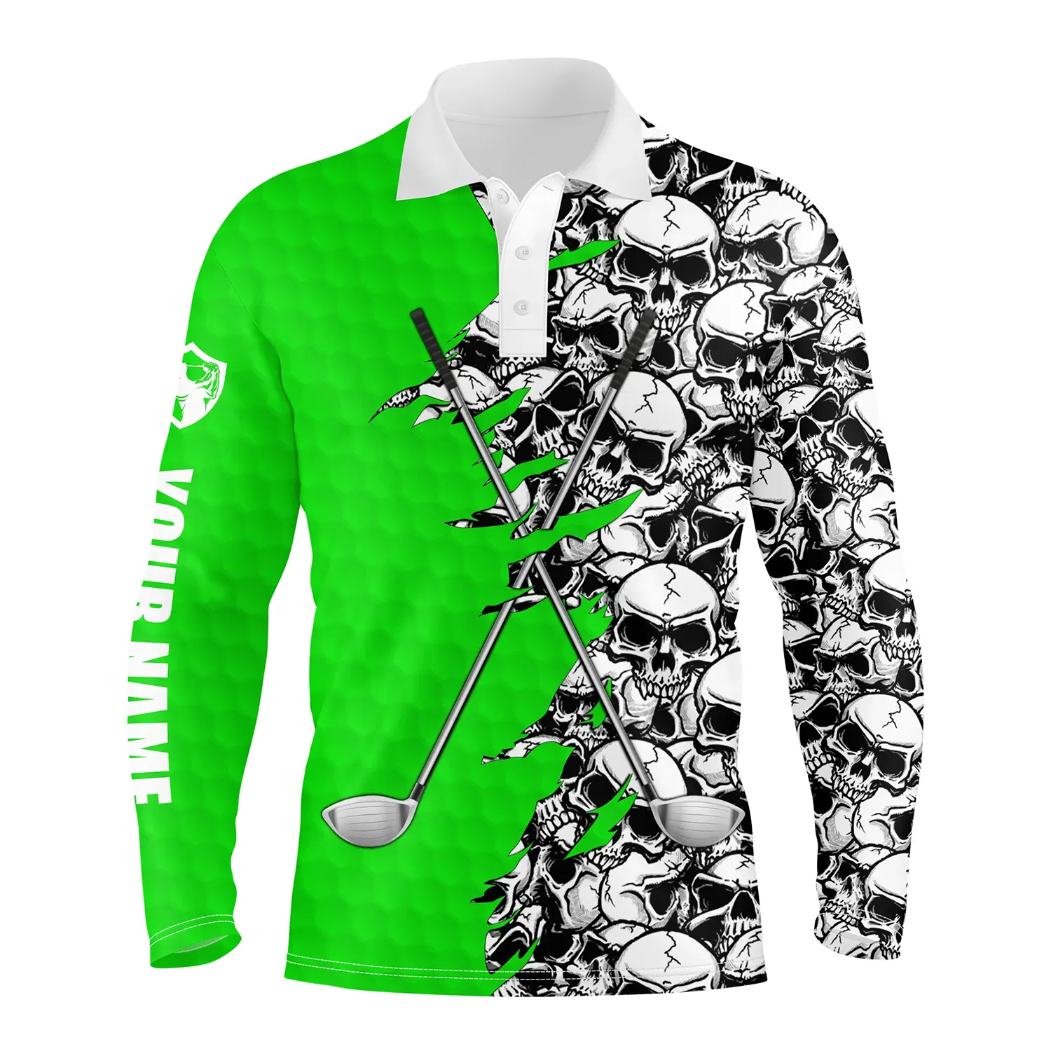 Mens short long sleeve golf tops polo green pattern skull golf clubs custom golf performance shirts NQS4758