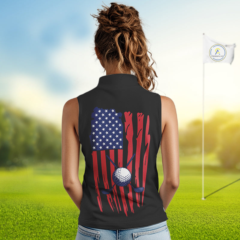 American Flag Golf Sleeveless polo shirts custom patriotic golf top for women, golfing gifts | Black NQS10016