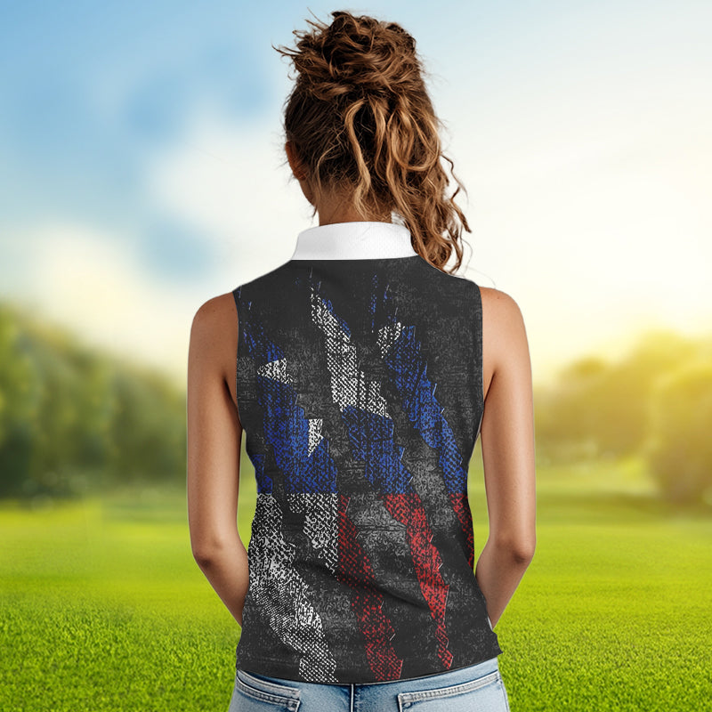 Black and White Grunge Texas Flag Women sleeveless polo shirt custom Patriotic golf shirt for women NQS9377