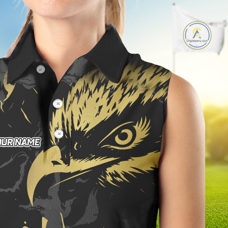 Black & Gold Eagle sleeveless golf polo shirts custom Women's golf team shirt, personalized golf gift NQS10208
