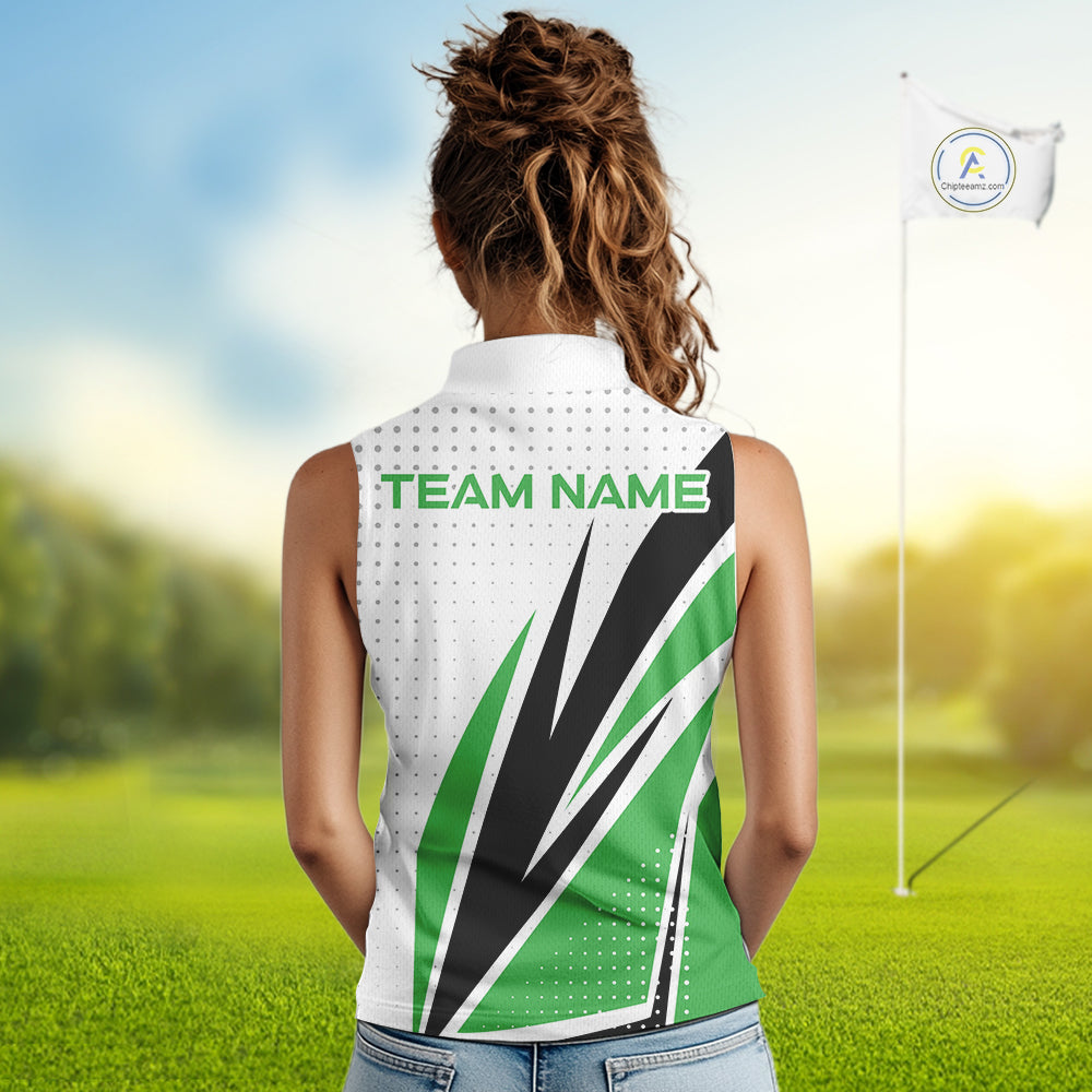 Black, White and Green Sleeveless Golf polo shirts For Women custom ladies golf top, unique golf gift NQS10010