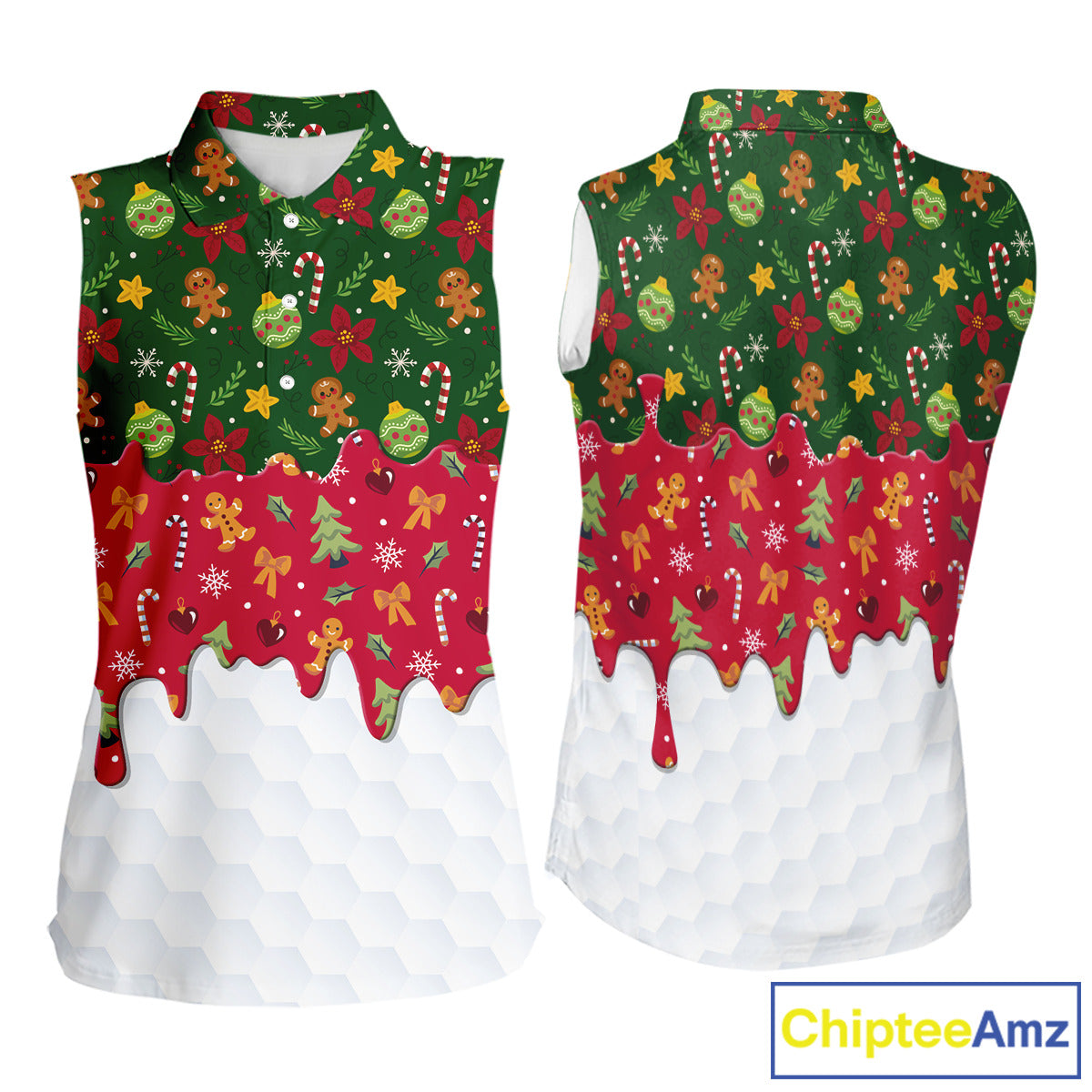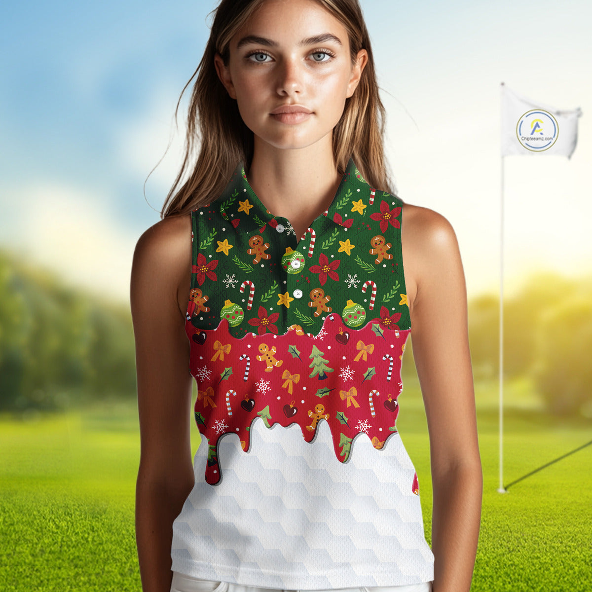 Funny Christmas pattern Sleeveless Golf Polo Shirt, Christmas golf gifts ladies golf outfit NQS10866