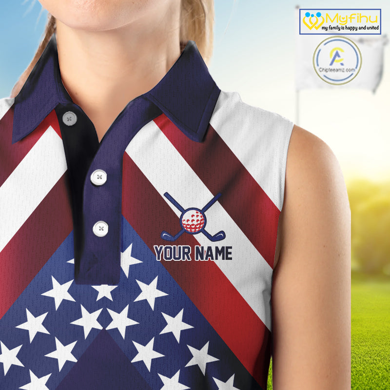 Red, White and Blue American Flag sleeveless golf polo shirts Custom Patriotic ladies golf outfit NQS10227
