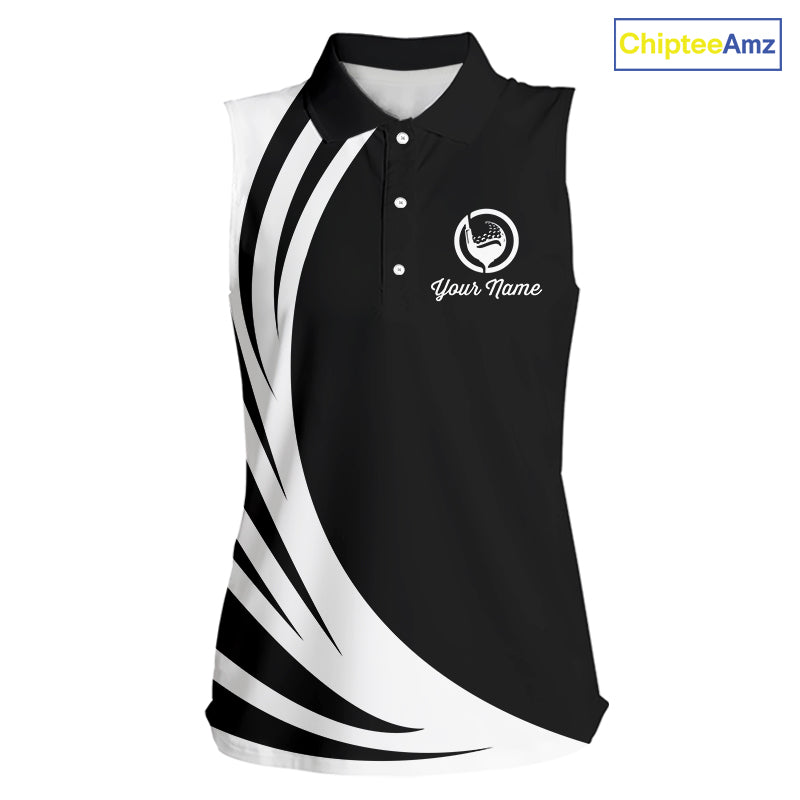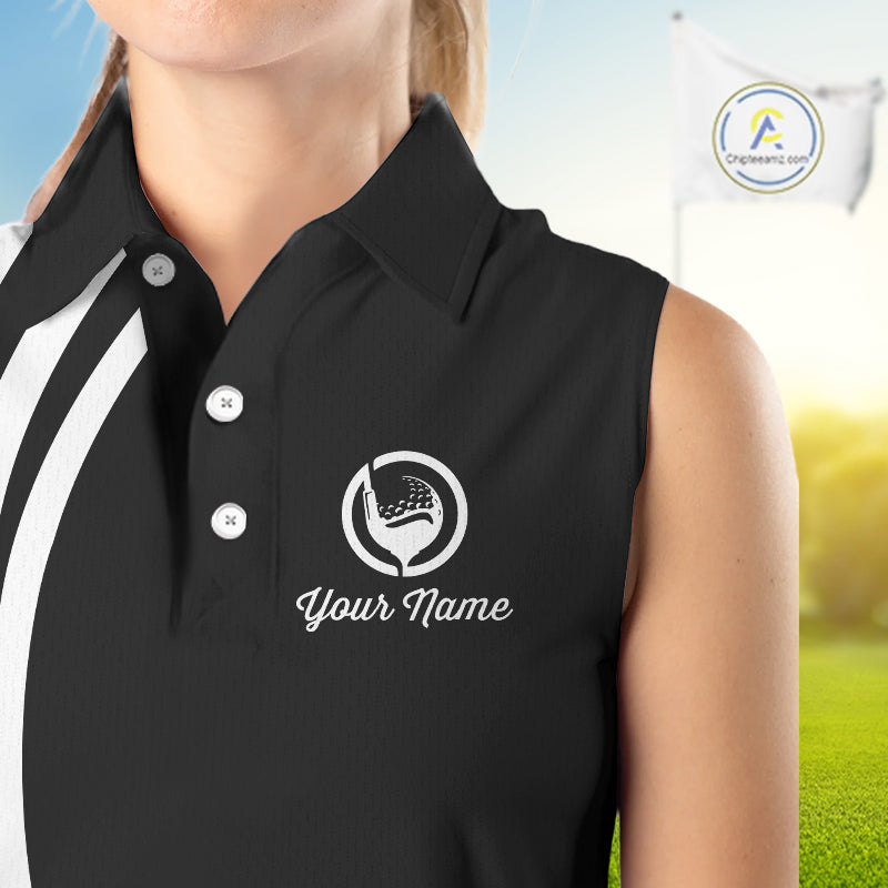Women sleeveless polo shirt custom name black and white golf shirt, team golf shirts ladies NQS9844