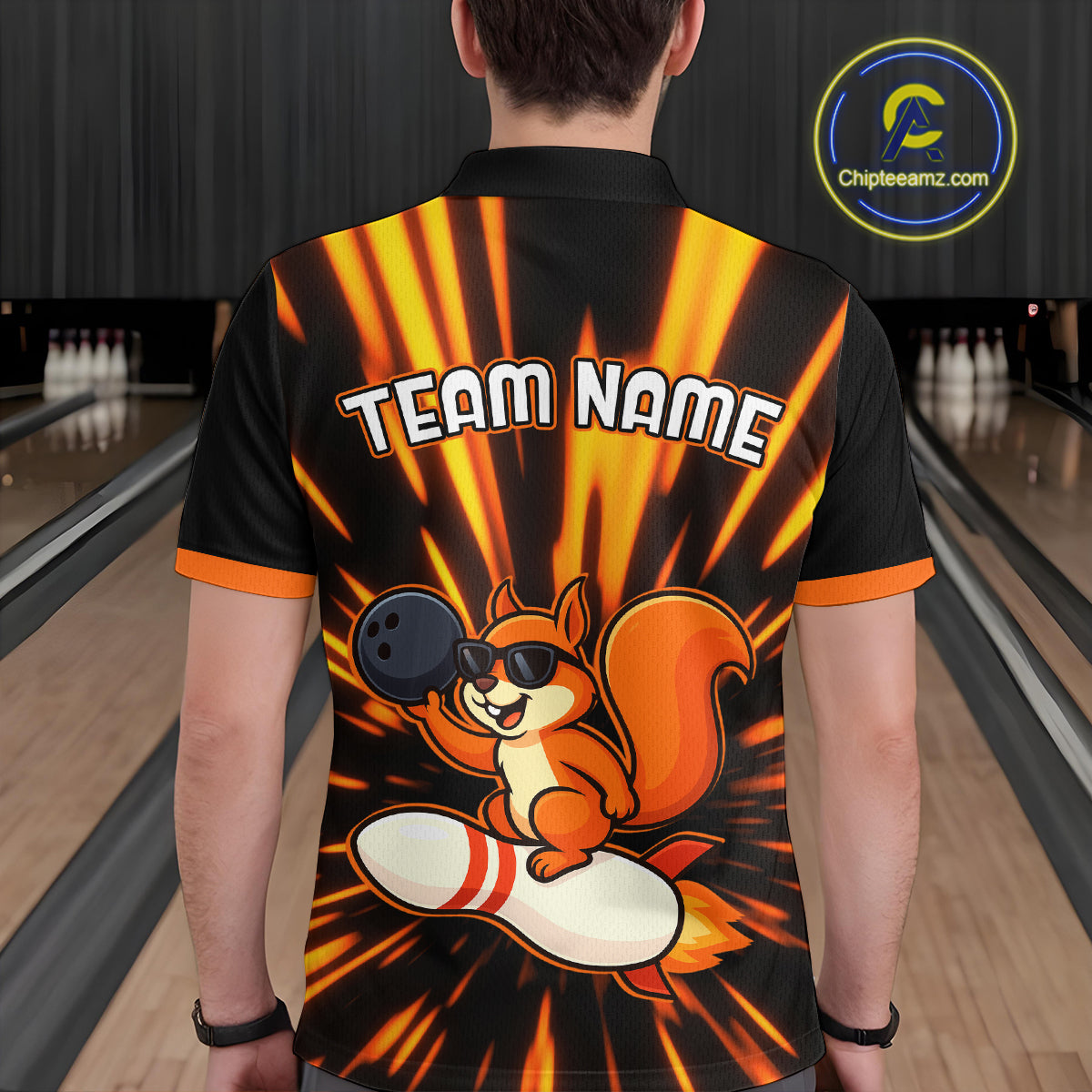 Funny Squirrel Bowling Team Shirt Custom Bowling League Jersey for Men Bowling Outfit Polo & 1/4-Zip QZT766