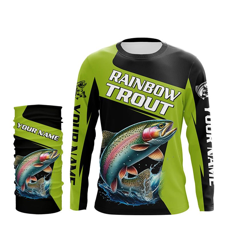 Black Green Rainbow Trout fishing Custom Long Sleeve Tournament Fishing Shirt, Trout Fishing Jerseys NQS7659